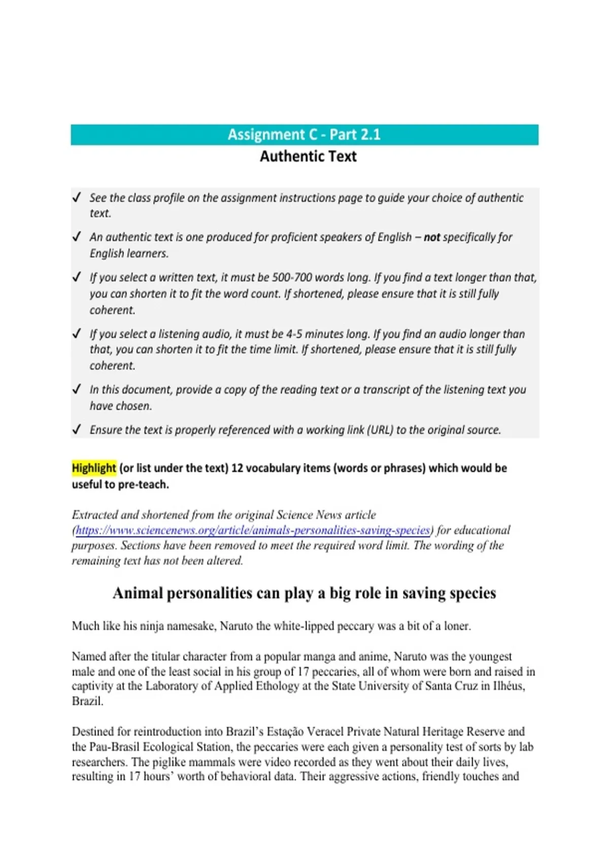 ✔ See the class profile on the assignment instructions page to guide your choice of authentic