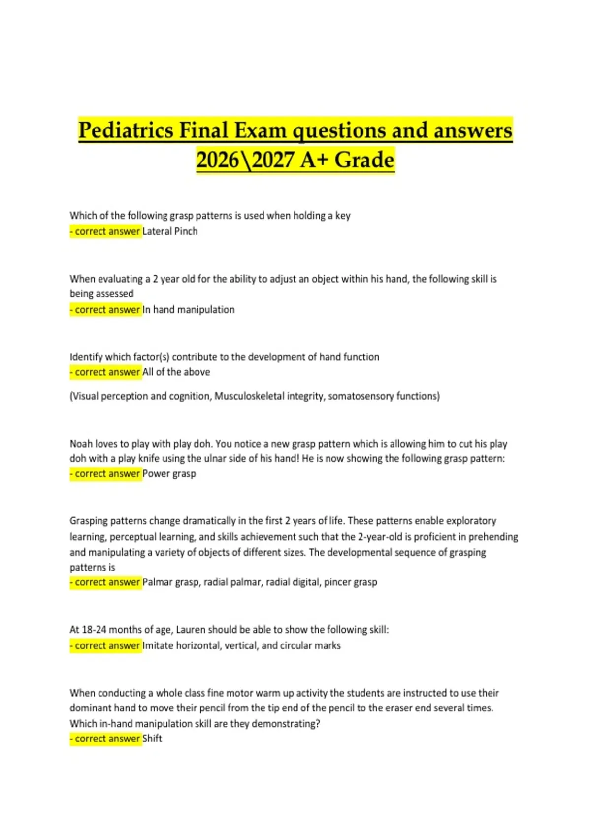 Pediatrics Final Exam 2026–2027 | Questions & Answers | A+ Grade Verified Solutions