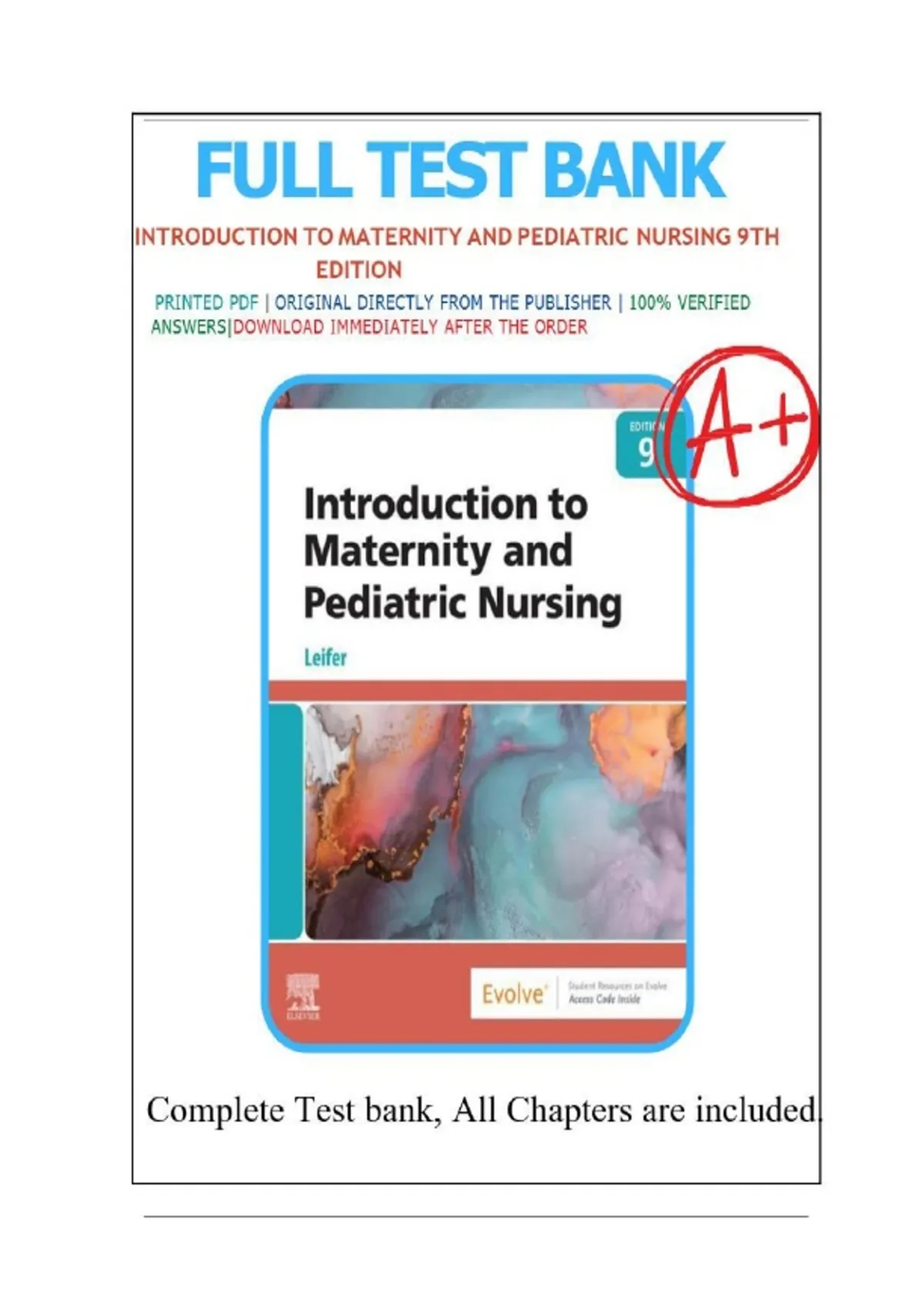 Get the Test Bank for Introduction to Maternity and Pediatric Nursing, 9th Edition by Gloria Leifer, fully 2026 updated to support current nursing education. This test bank features comprehensive maternity and pediatric nursing exam questions with accurate answers, helping nursing students and instructors master maternal-child concepts, pediatric care, clinical decision-making, and exam preparation with confidence.