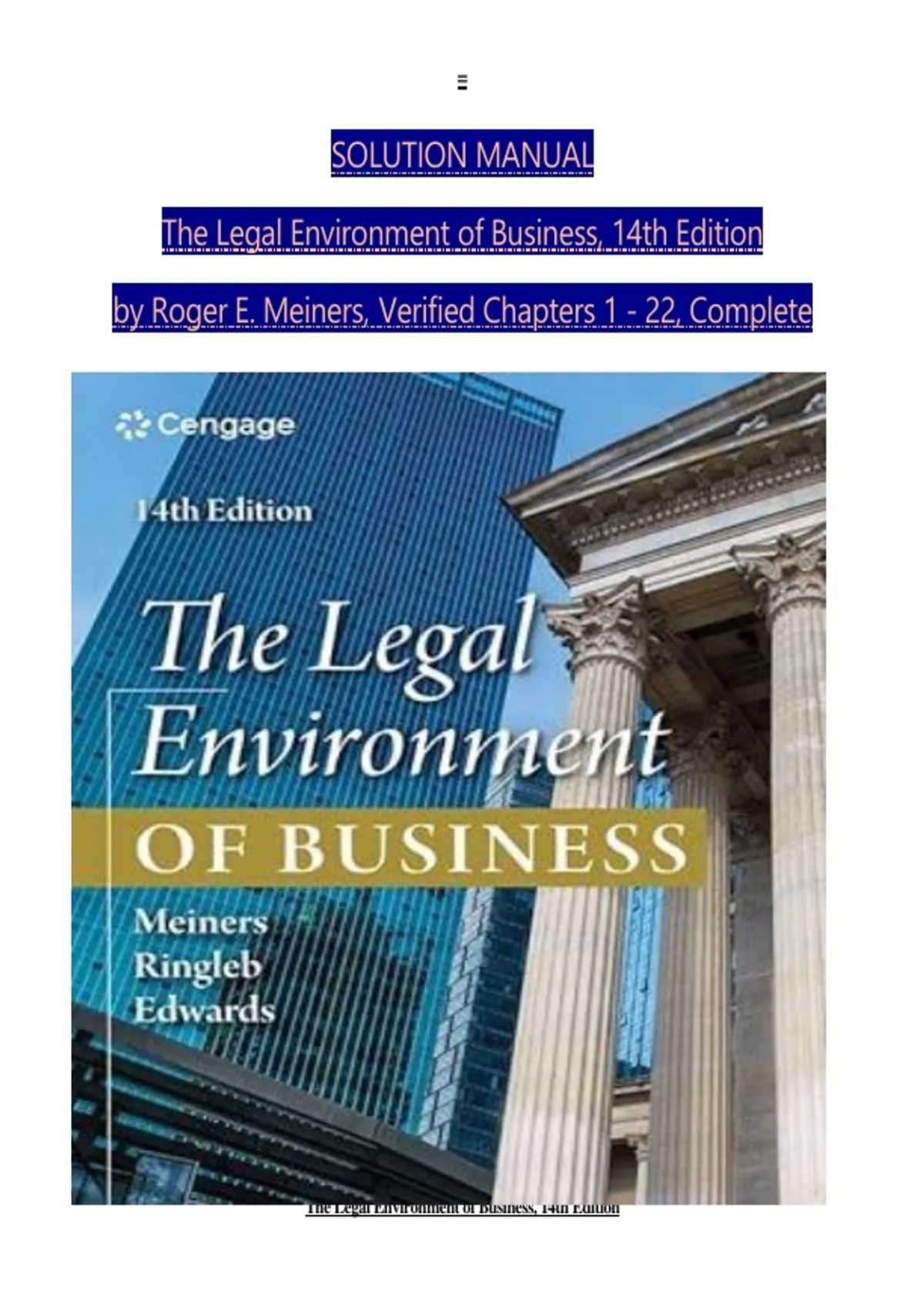 Legal Environment of Business (14th Ed.) Meiners – Solution Manual