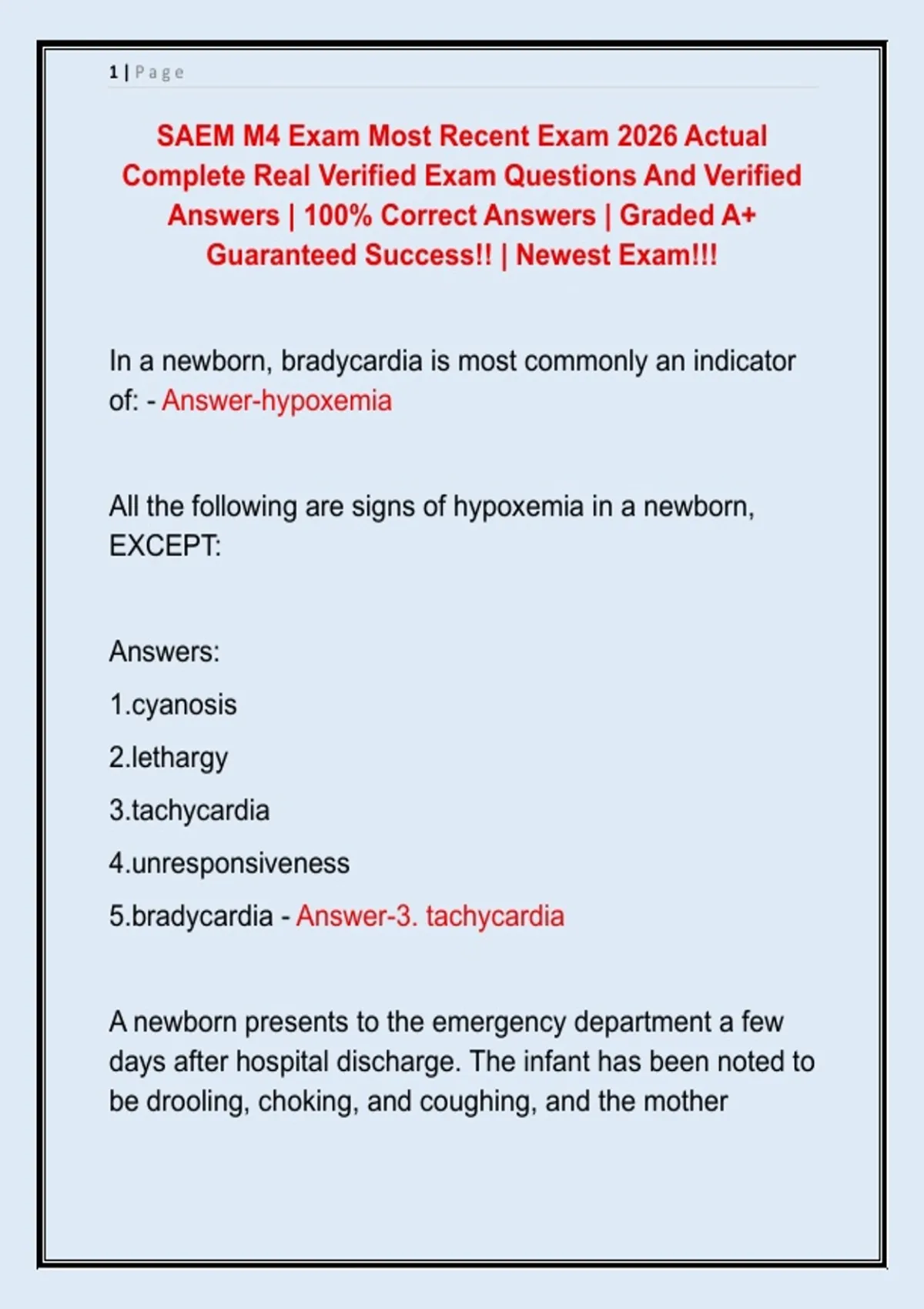 SAEM M4 Exam Most Recent Exam 2026 Actual