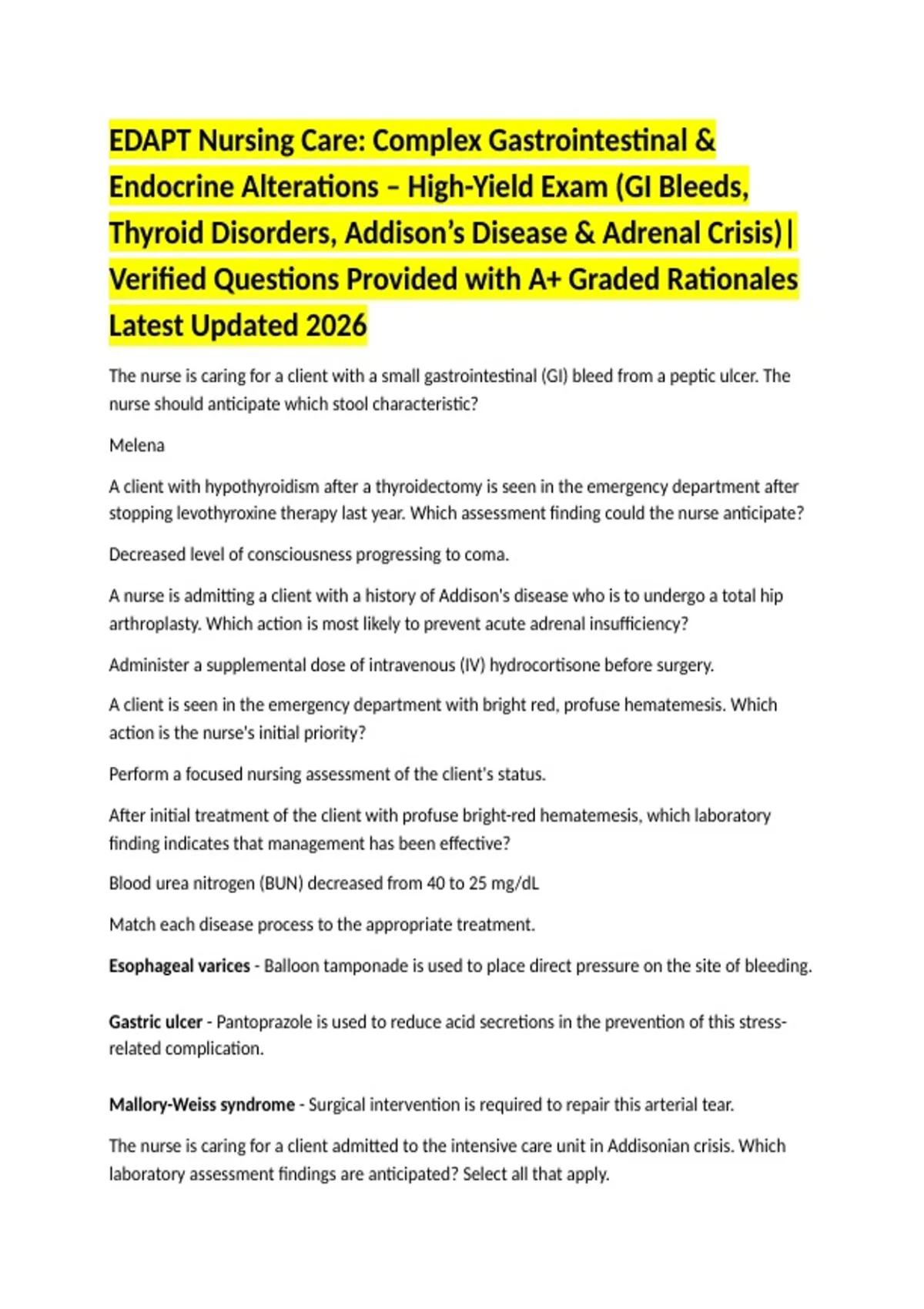 Endocrine Alterations – High-Yield Exam (GI Bleeds,