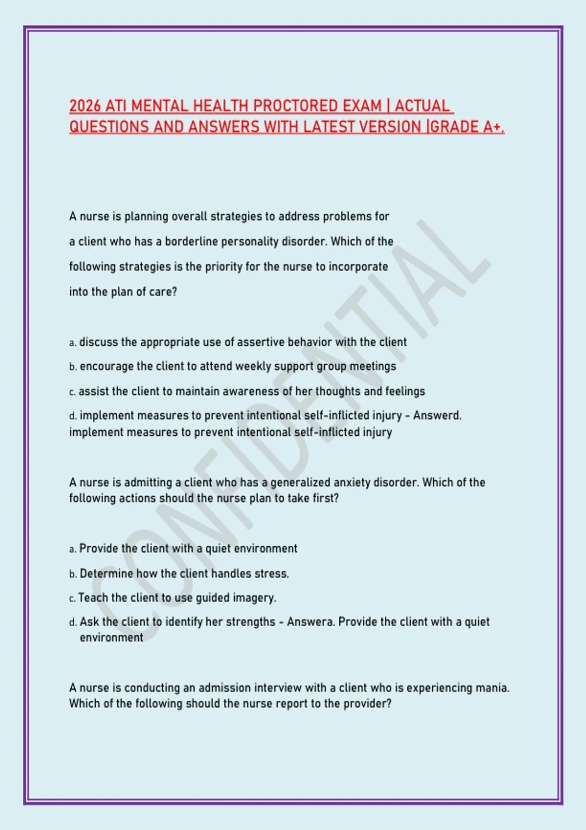 2026 ATI MENTAL HEALTH PROCTORED EXAM | ACTUAL QUESTIONS AND ANSWERS WITH LATEST VERSION |GRADE A+.