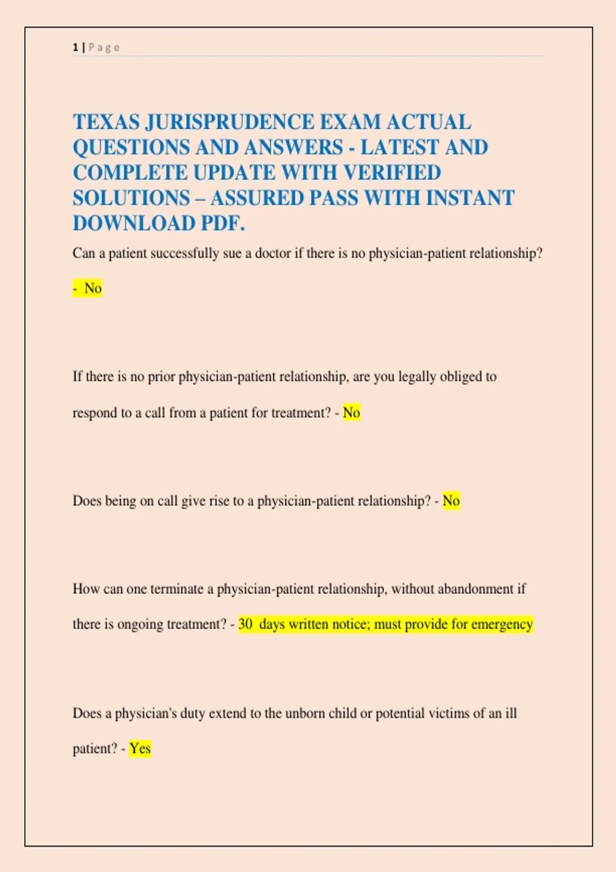 TEXAS JURISPRUDENCE EXAM ACTUAL QUESTIONS AND ANSWERS - LATEST AND COMPLETE UPDATE WITH VERIFIED SOLUTIONS – ASSURED PASS WITH INSTANT DOWNLOAD PDF.
