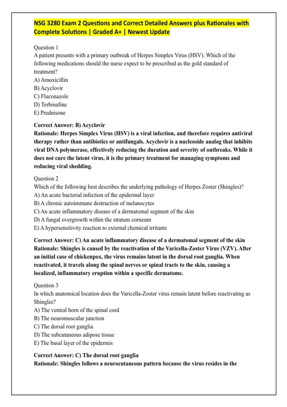NSG 3280 Exam 2 Questions and Correct Detailed Answers plus Rationales with