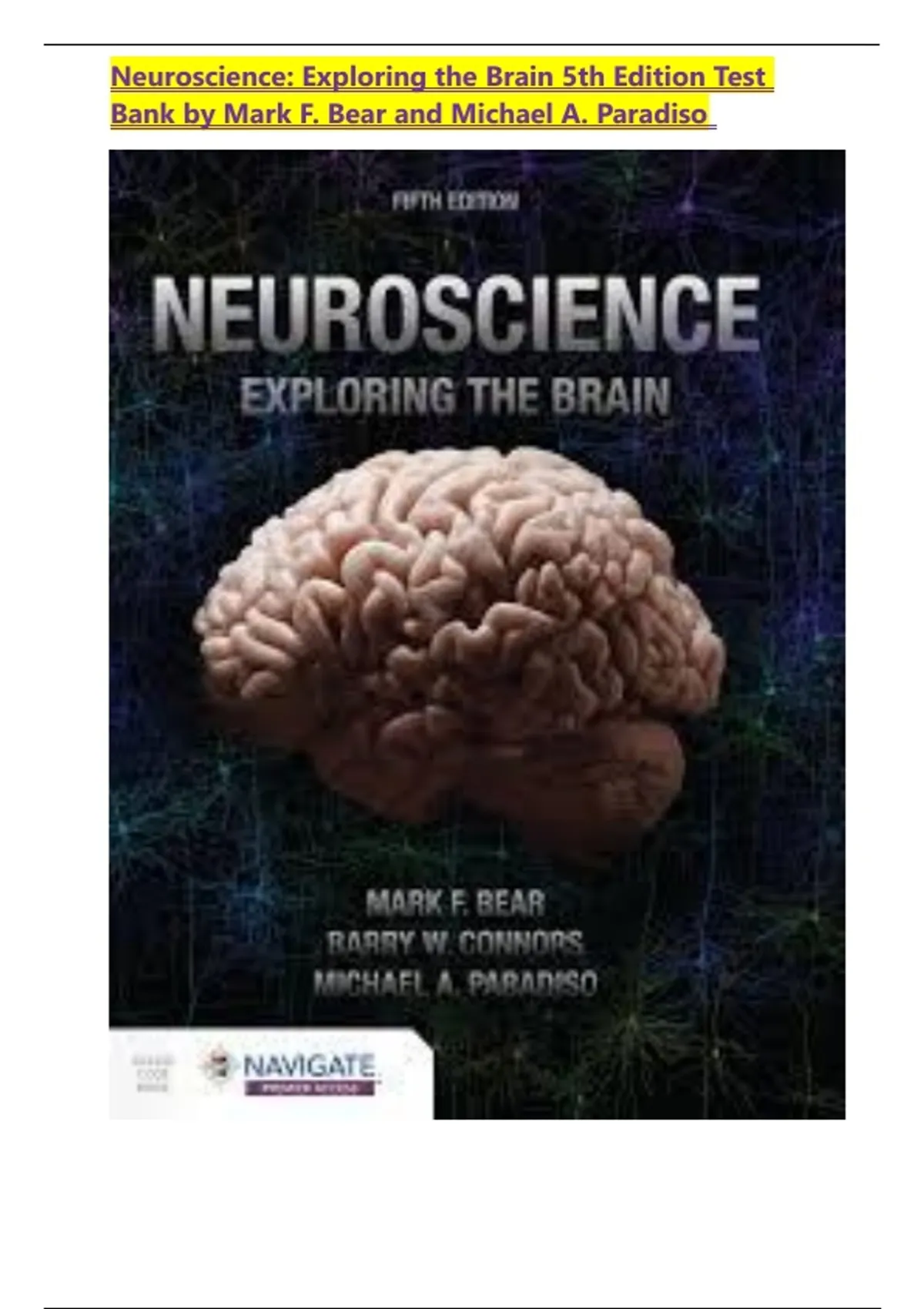 Neuroscience: Exploring the Brain 5th Edition Test