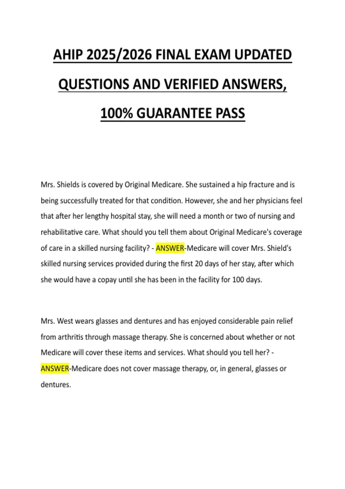 AHIP 2025/2026 FINAL EXAM UPDATED QUESTIONS AND VERIFIED ANSWERS, 100% GUARANTEE PASS