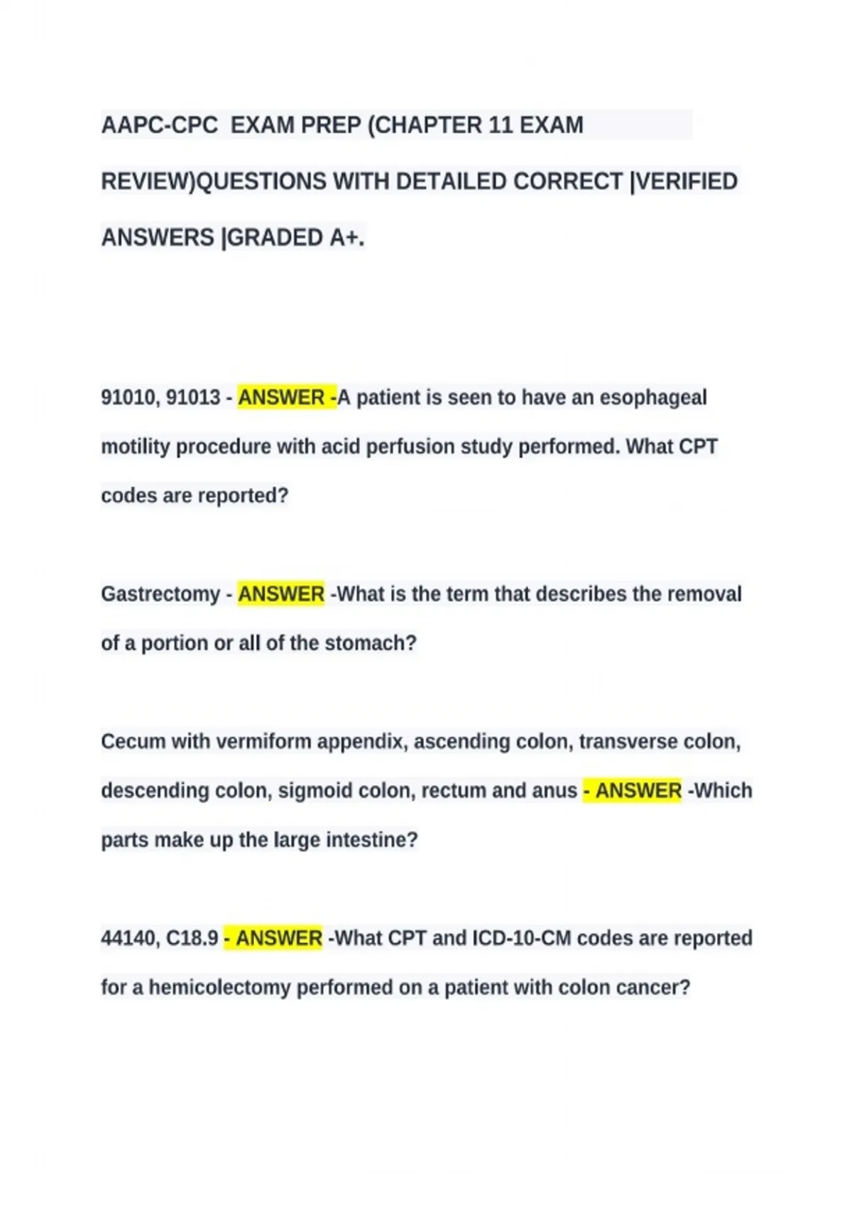 This document provides a complete AAPC Medical Coding exam with guaranteed accurate answers, designed to help students and professionals master medical coding concepts. It covers CPT, ICD-10, and HCPCS coding, offering reliable practice material for exam preparation, skill reinforcement, and certification readiness.