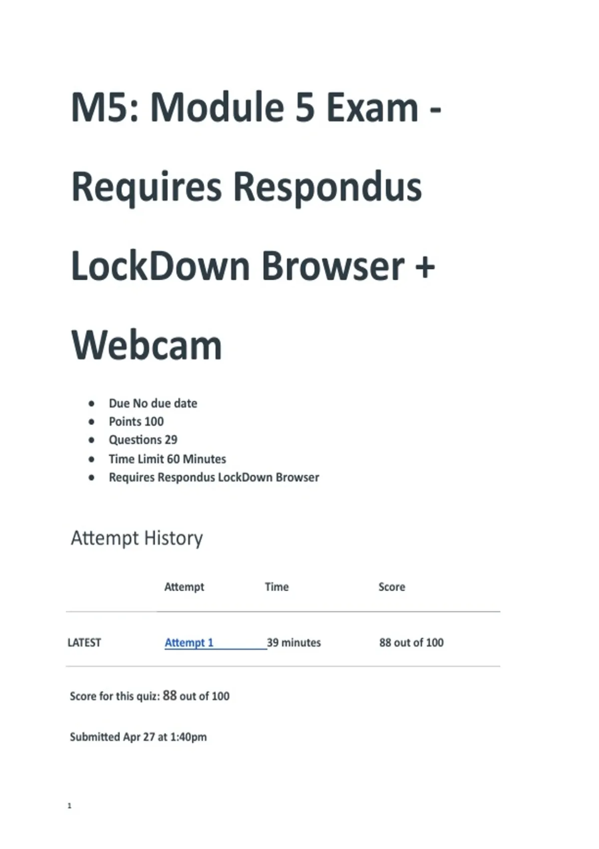 LATEST Attempt 1 39 minutes 88 out of 100