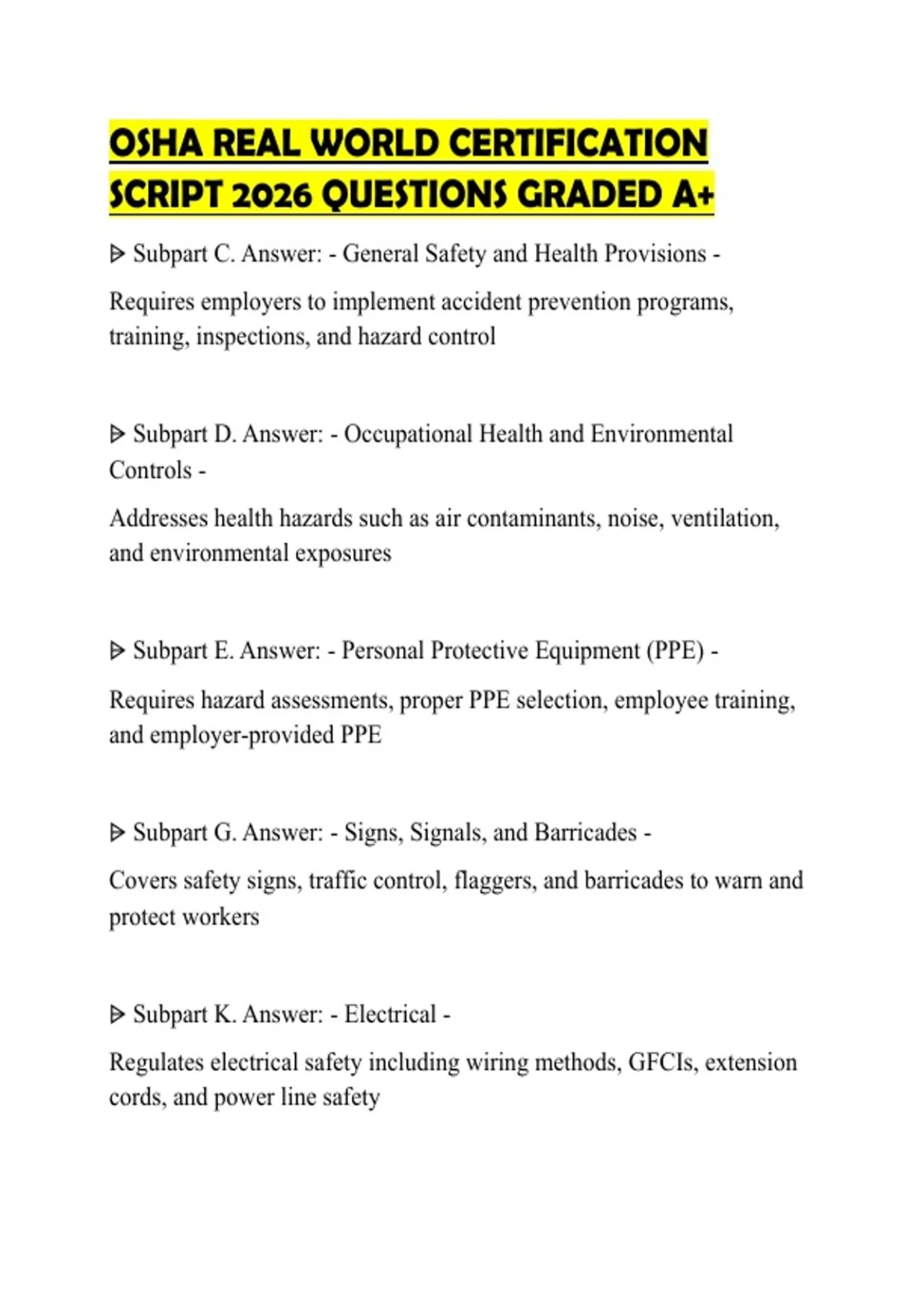 ⩥ Subpart C. Answer: - General Safety and Health Provisions -