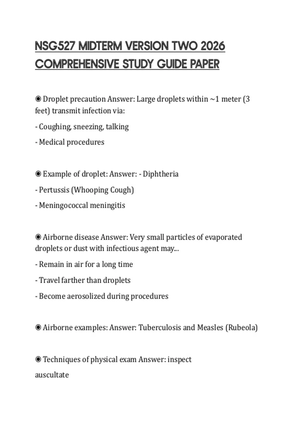 NSG527 MIDTERM VERSION TWO 2026 COMPREHENSIVE STUDY GUIDE PAPER