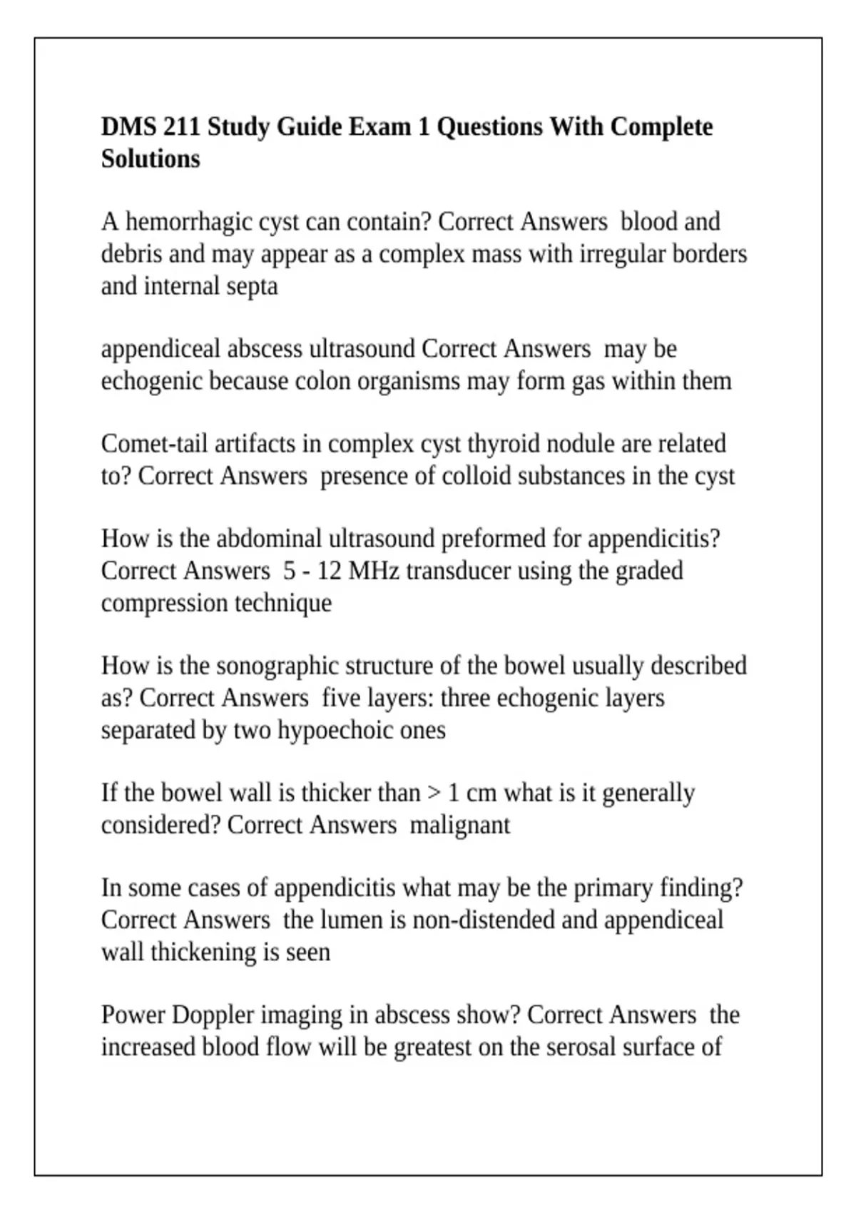 Correct Answers 1. hyperechoic inner layer represents the