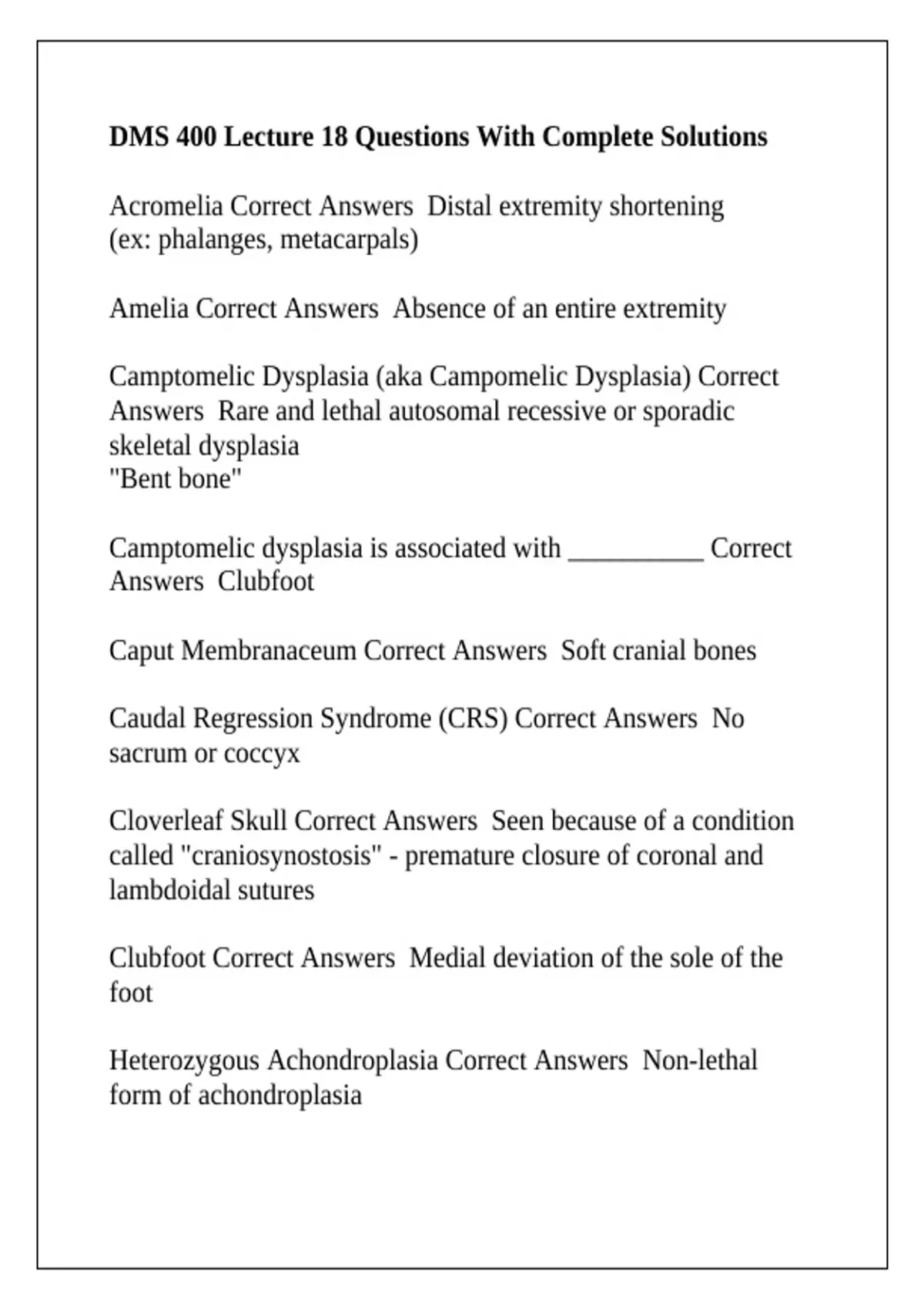 Acromelia Correct Answers Distal extremity shortening