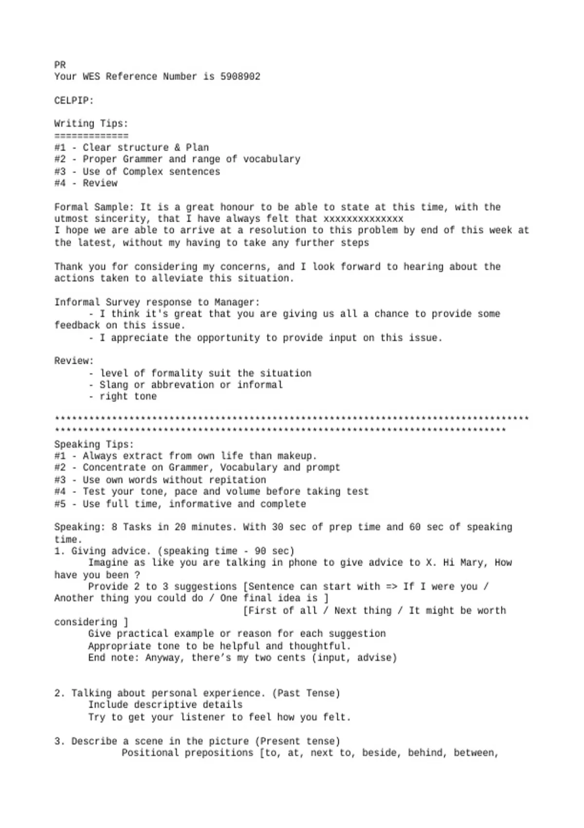 Your WES Reference Number is 5908902