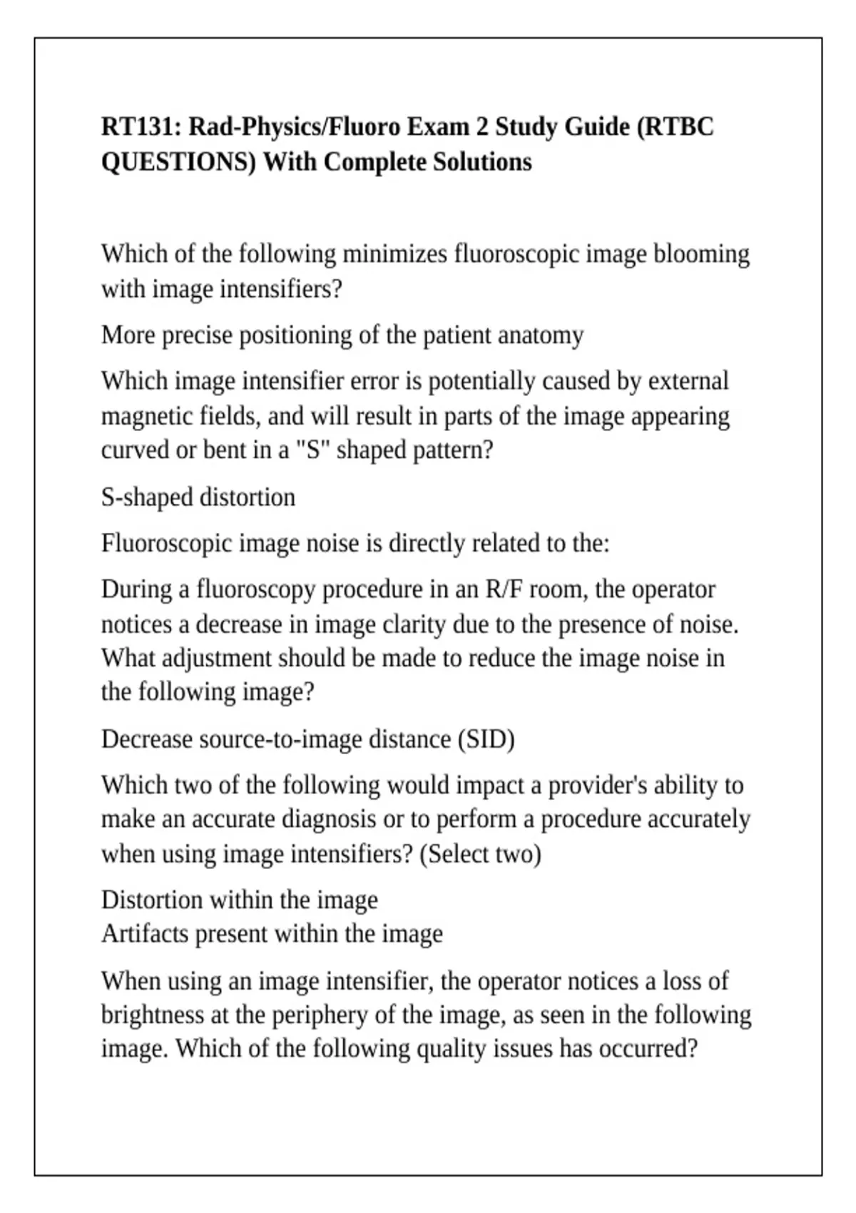 RT131: Rad-Physics/Fluoro Exam 2 Study Guide (RTBC QUESTIONS) With Complete Solutions