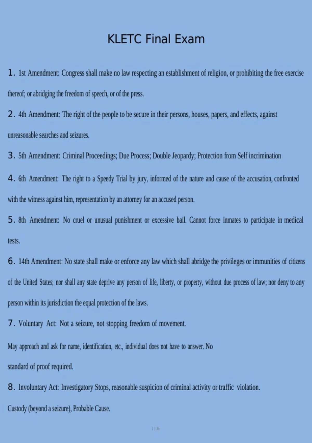 1. 1st Amendment: Congress shall make no law respecting an establishment of religion, or prohibiting the free exercise
