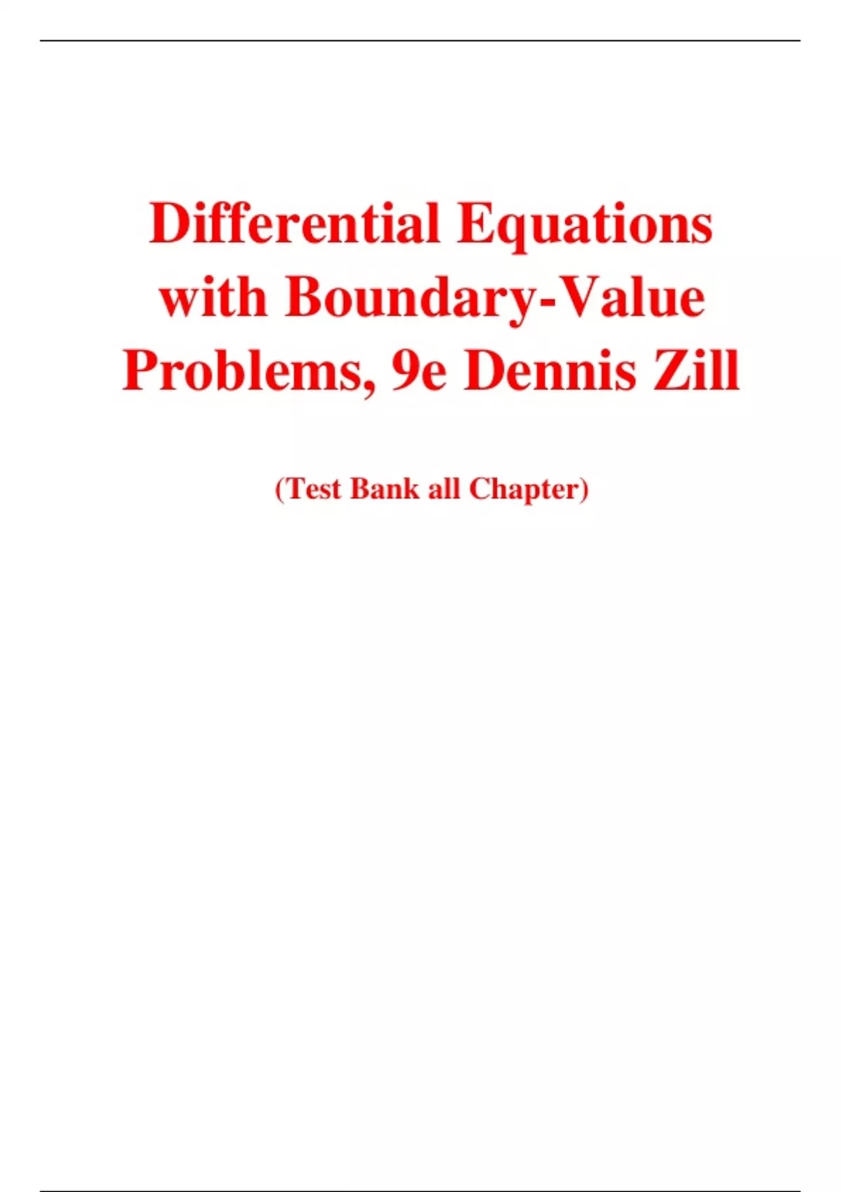 Differential Equations with Boundary-Value Problems, 9e Dennis Zill (Test Bank) Differential Equations with Boundary-Value Problems, 9e Dennis Zill (Test Bank)