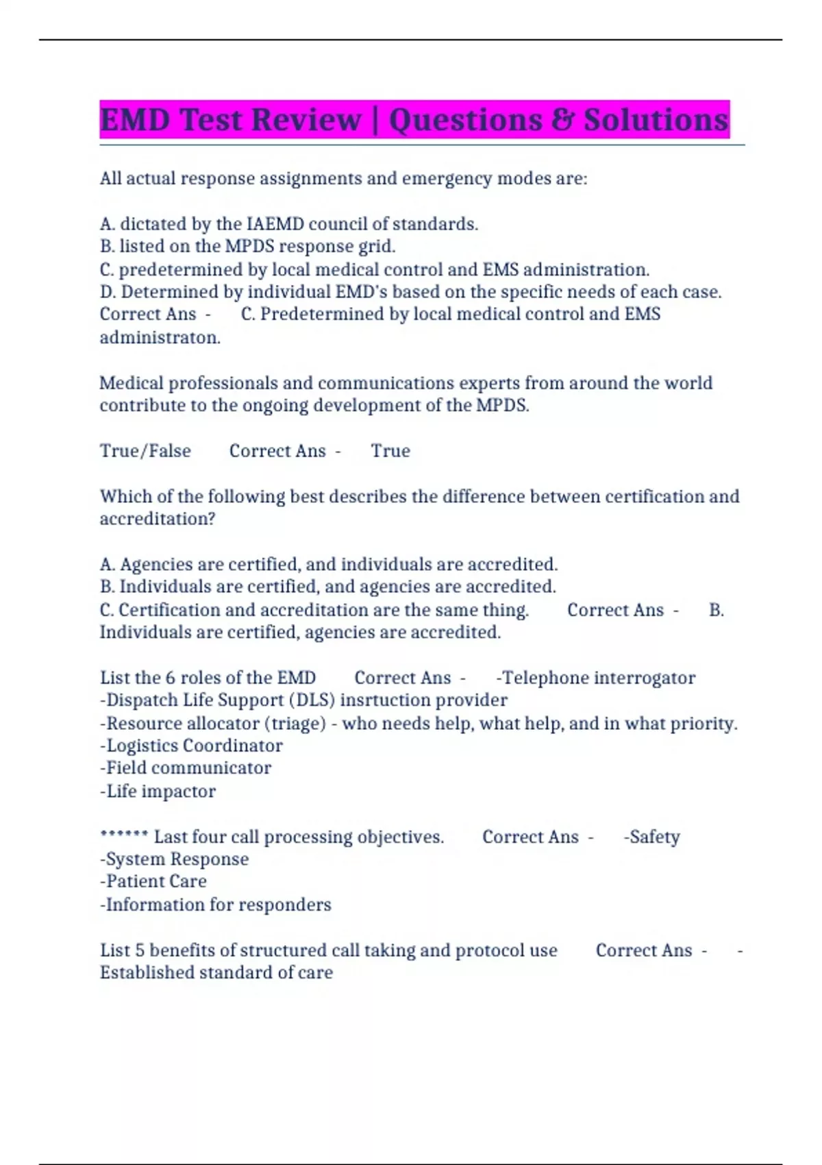 EMD Test Review | Questions & Solutions