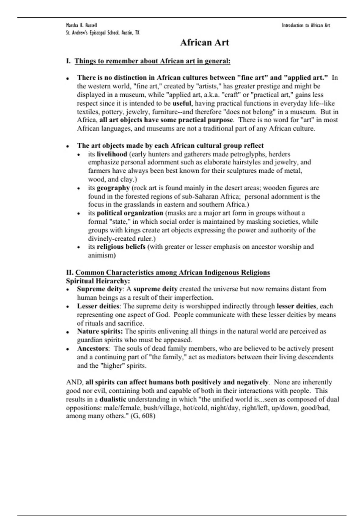 • There is no distinction in African cultures between "fine art" and "applied art." In