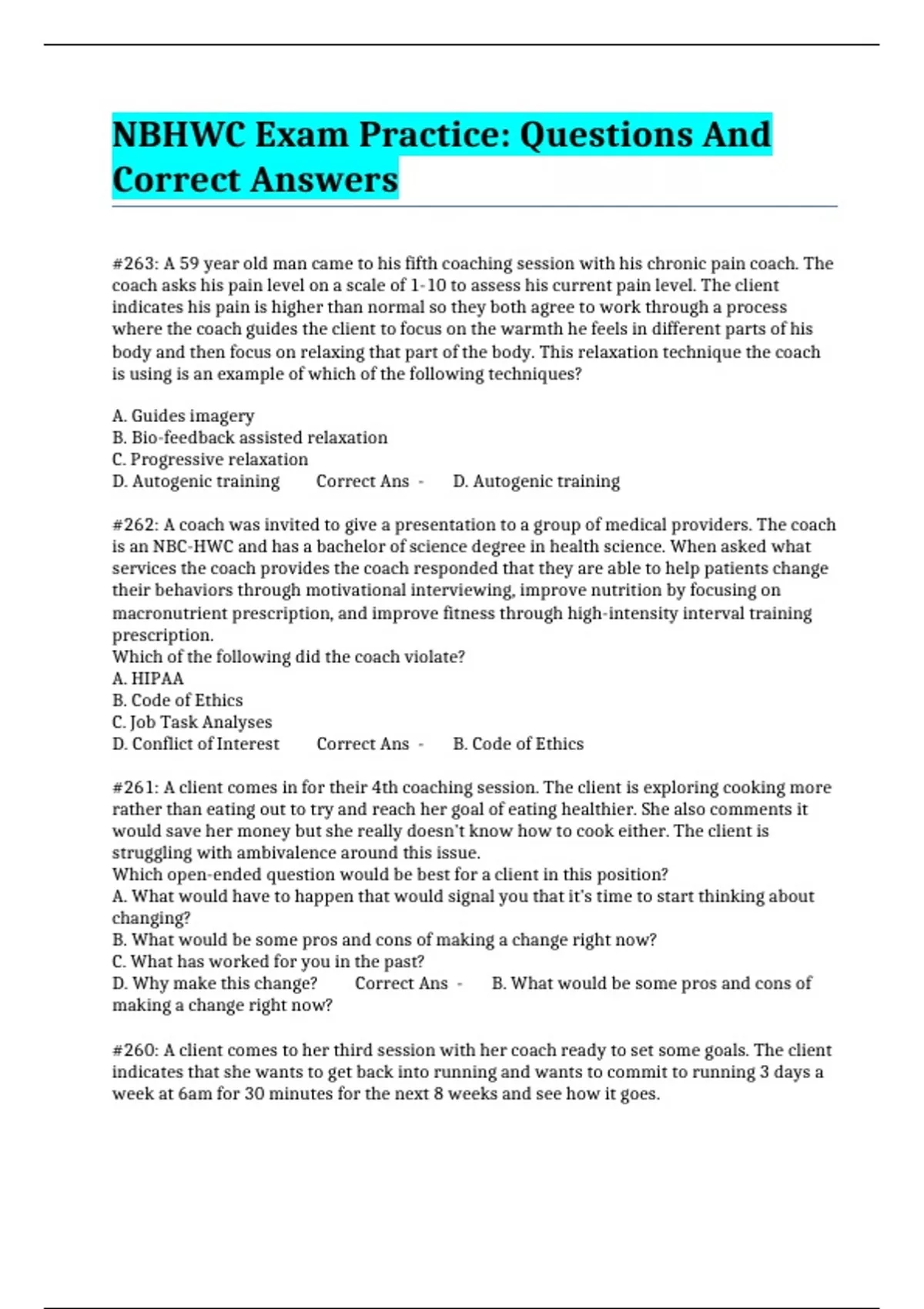 NBHWC Exam Practice: Questions And Correct Answers