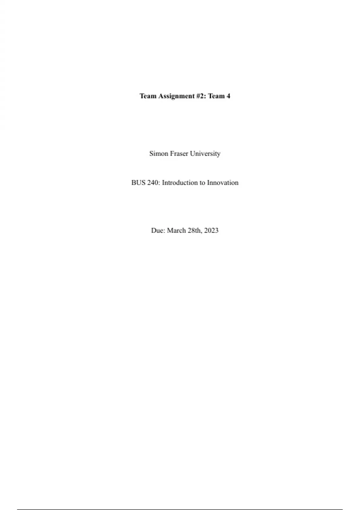 BUS 240: Introduction to Innovation