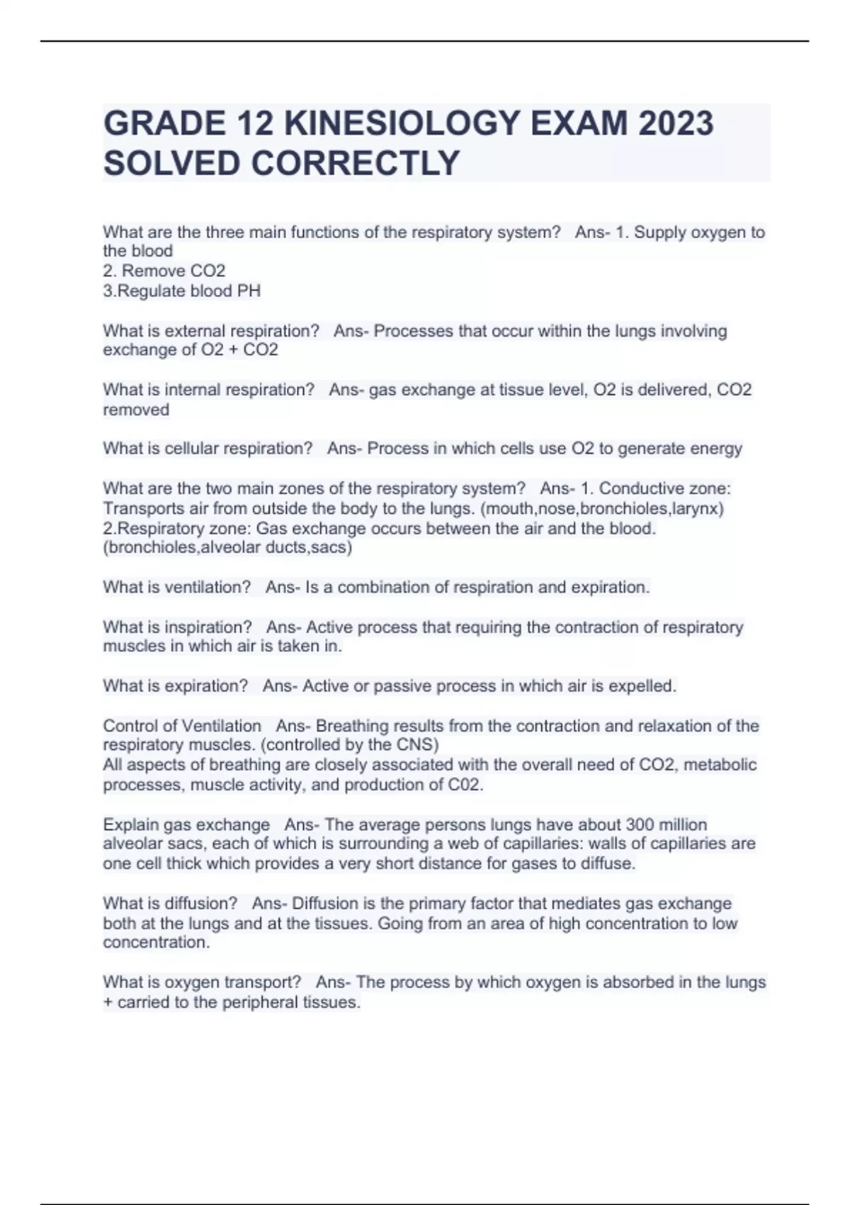 GRADE 12 KINESIOLOGY EXAM 2023 SOLVED CORRECTLY