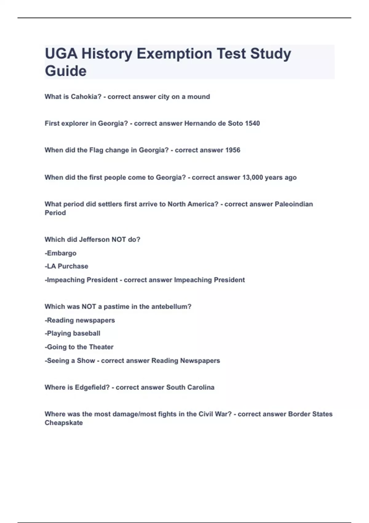 UGA History Exemption Test Study Guide|2023 LATEST UPDATE|GUARANTEED SUCCESS