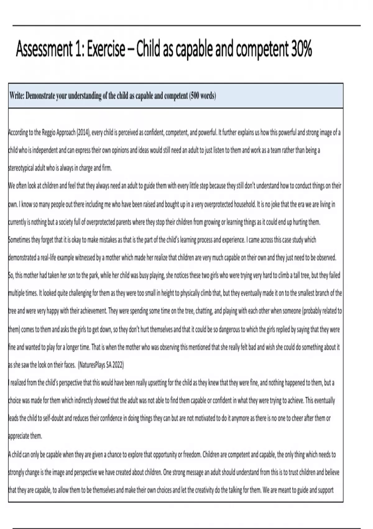 Assessment 1: Exercise – Child as capable and competent 30%