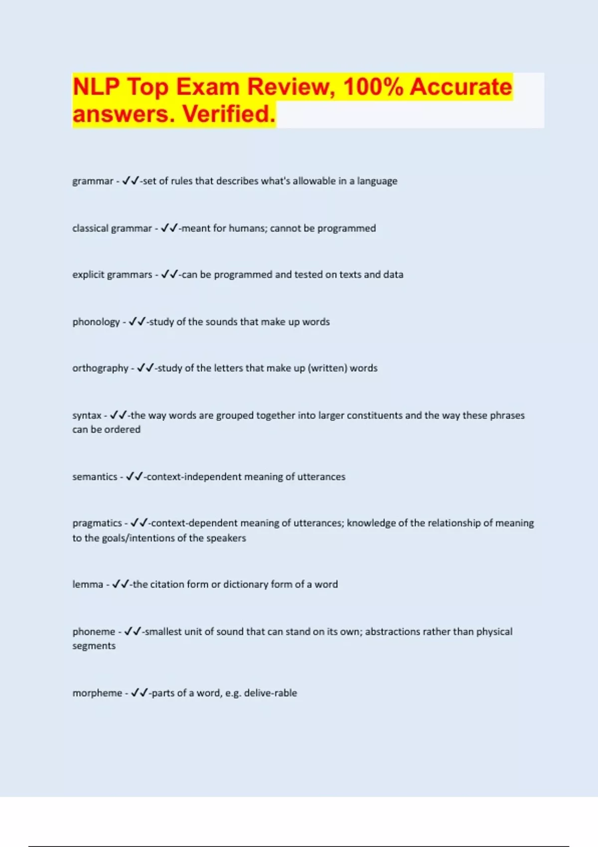 NLP Top Exam Review, 100% Accurate answers. Verified.