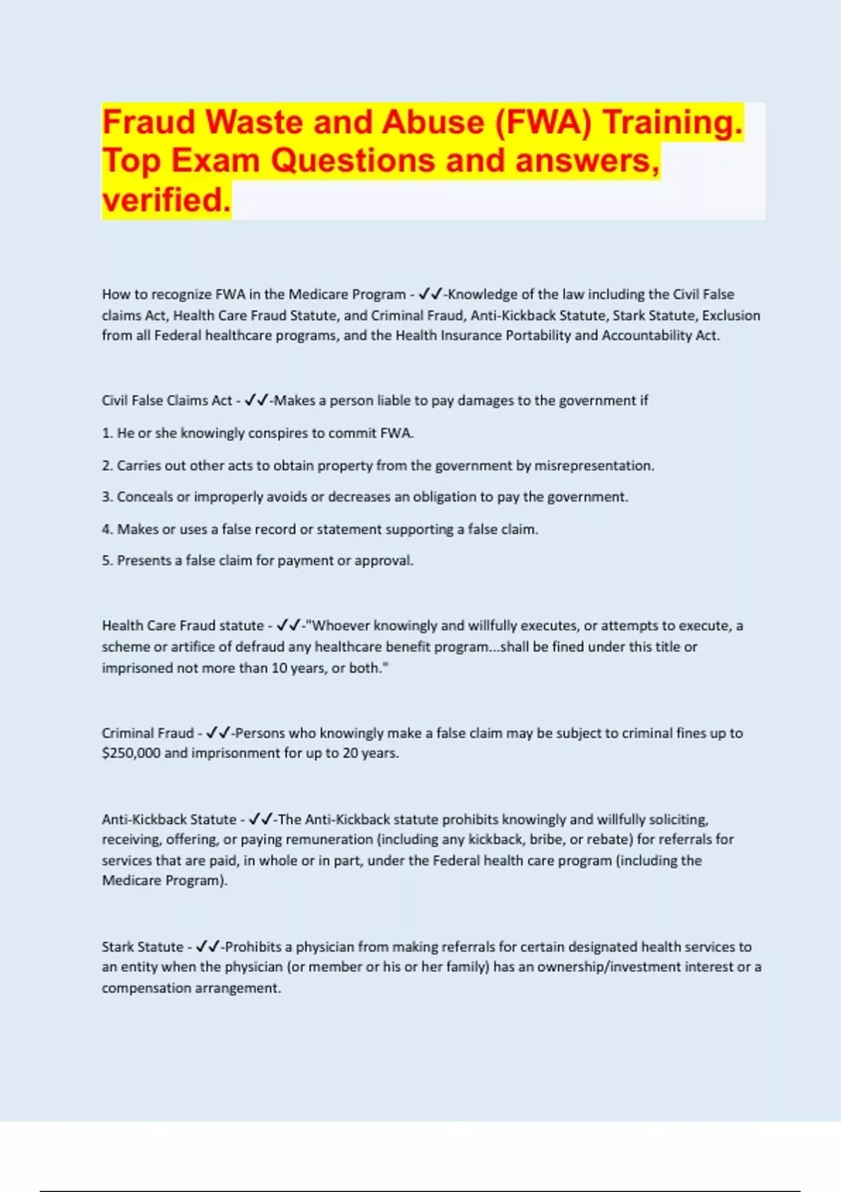 How to recognize FWA in the Medicare Program - ✔✔-Knowledge of the law including the Civil False