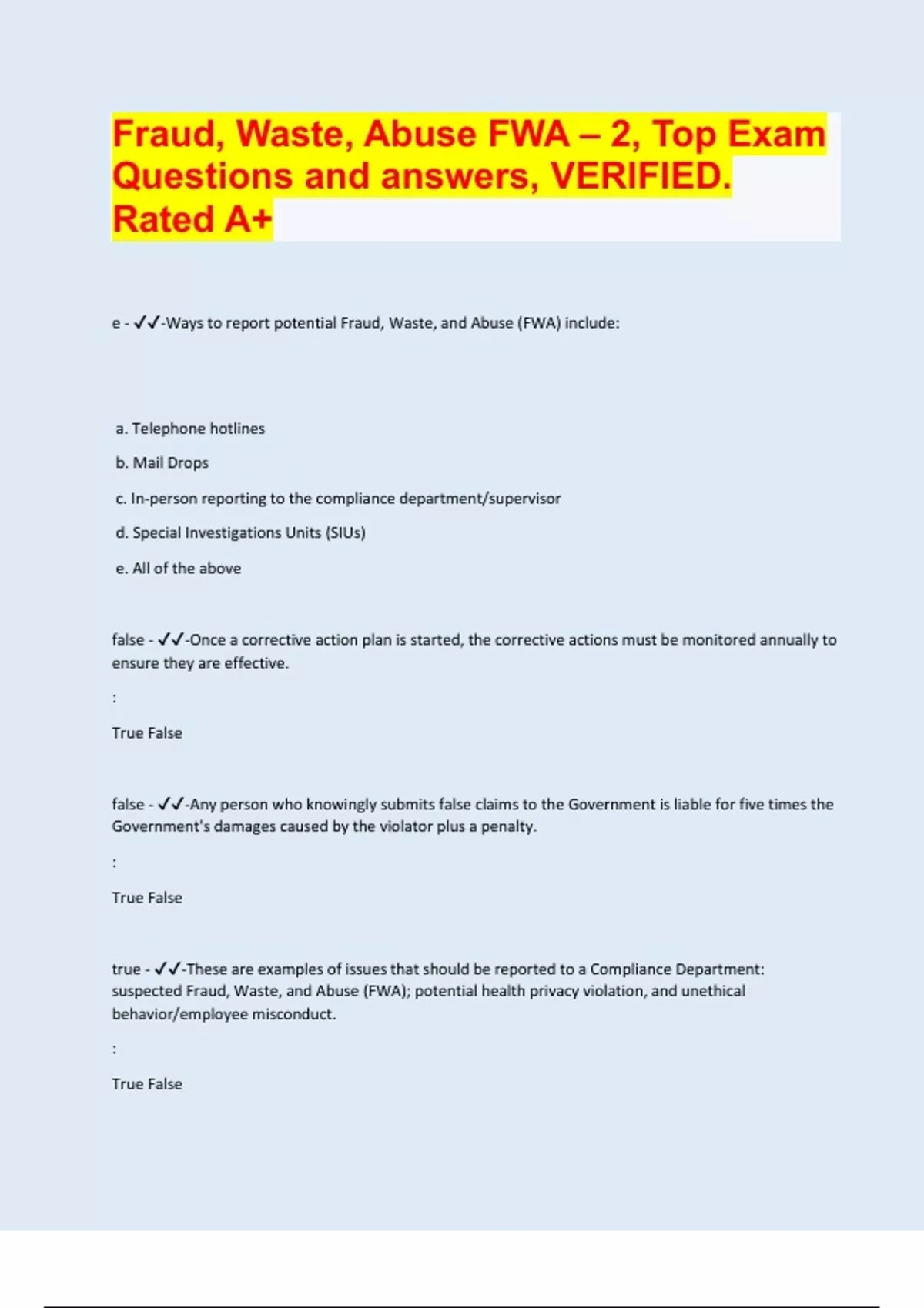e - ✔✔-Ways to report potential Fraud, Waste, and Abuse (FWA) include: