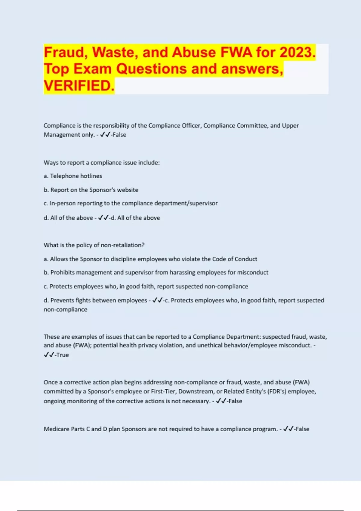 Medicare Parts C and D plan Sponsors are not required to have a compliance program. - ✔✔-False