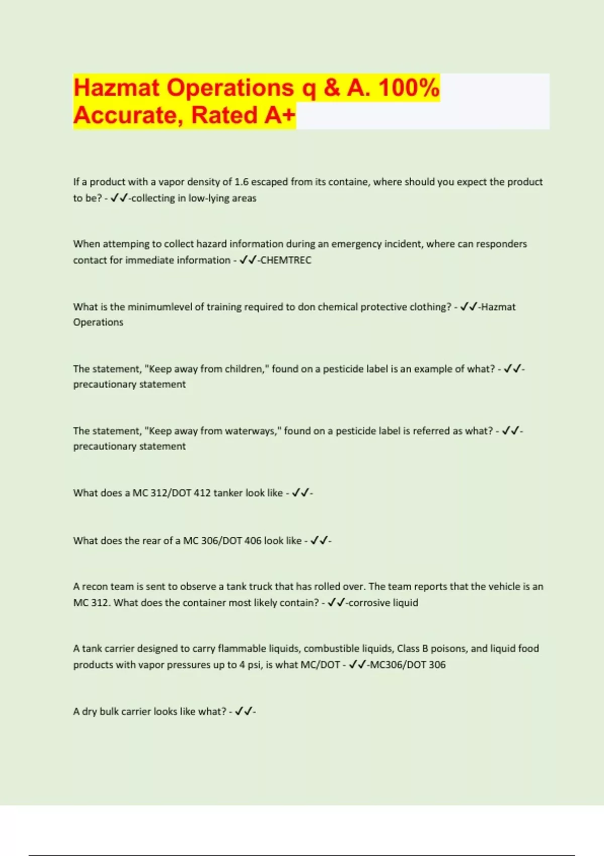 MC 312. What does the container most likely contain? - ✔✔-corrosive liquid