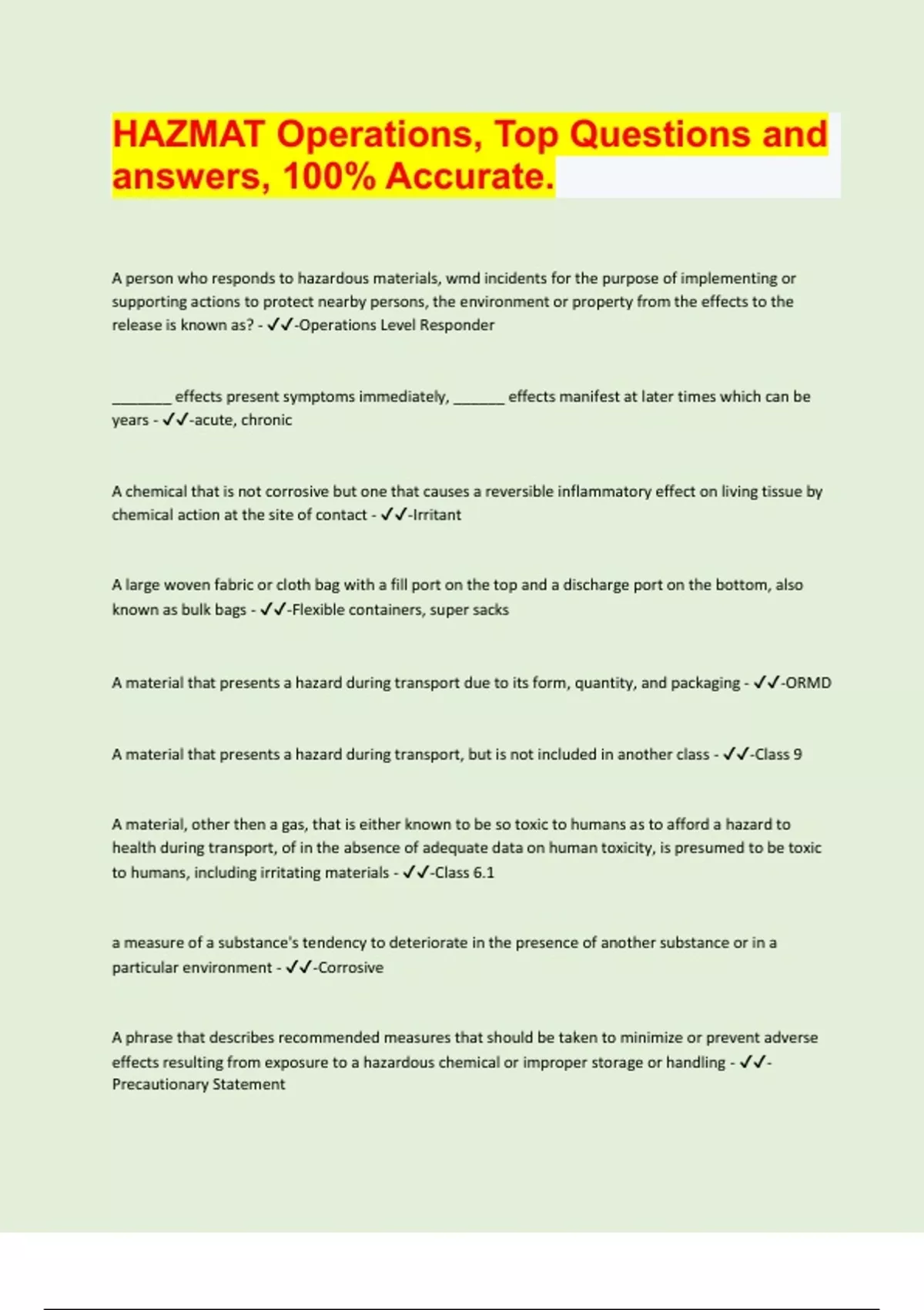 HAZMAT Operations, Top Questions and answers, 100% Accurate.