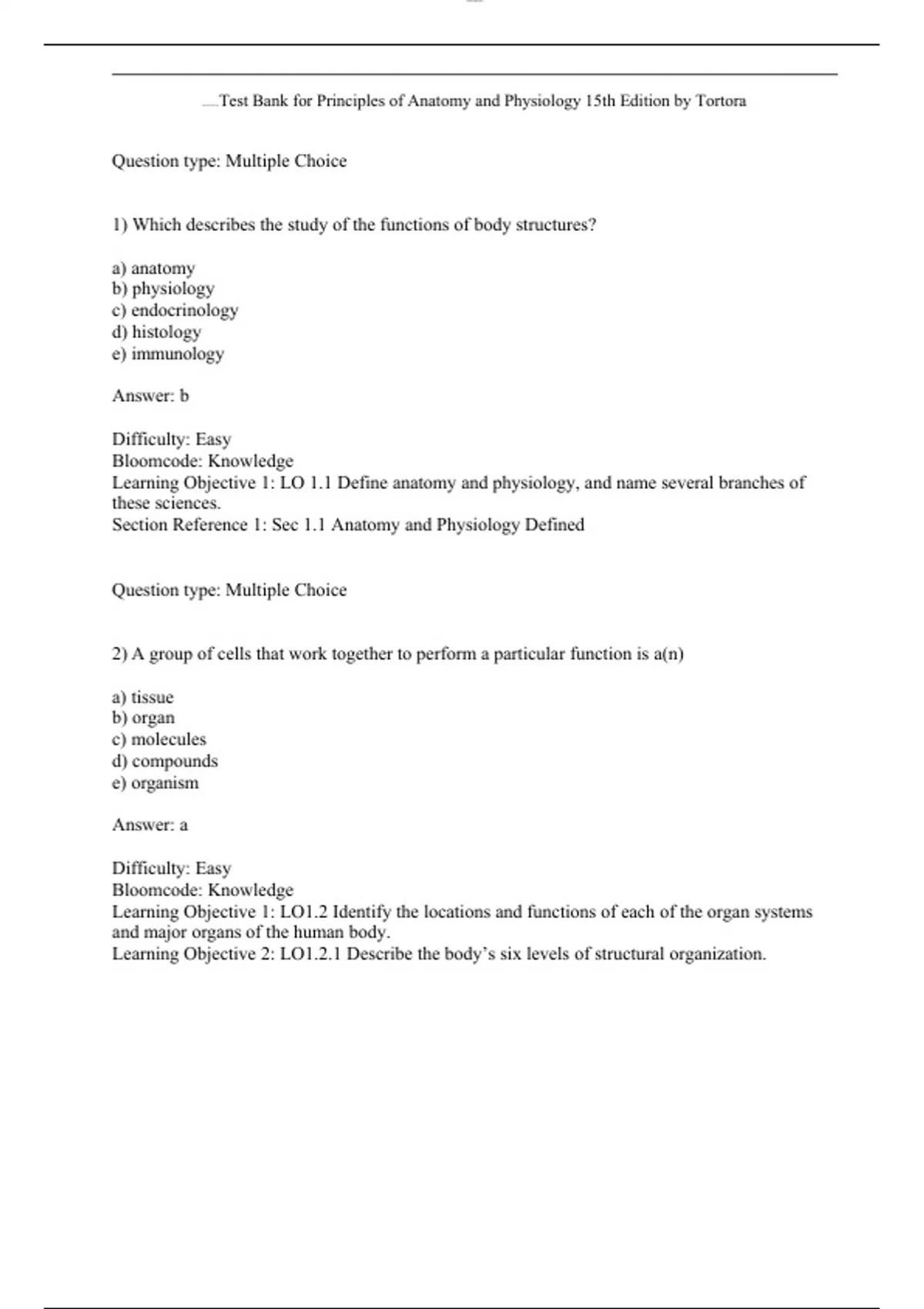 Test Bank for Principles of Anatomy and Physiology 15th Edition by Tortora