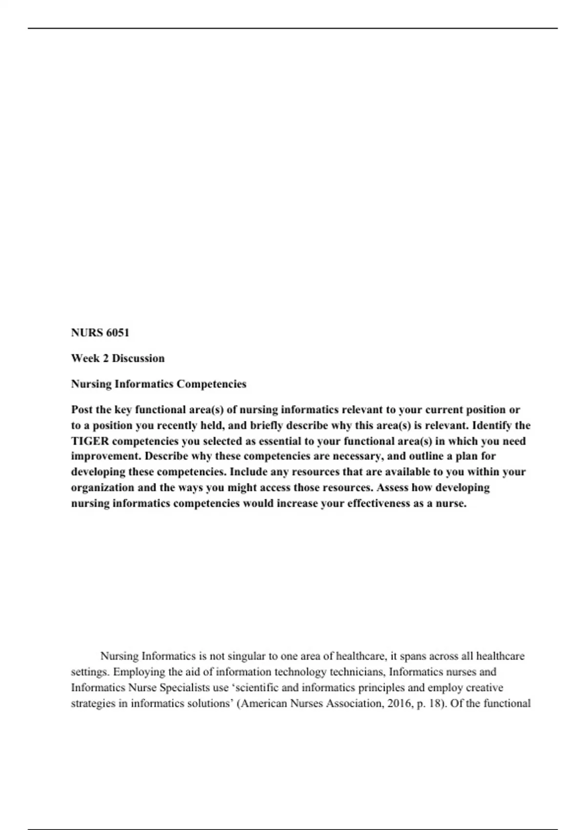 NURS 6051 Week 2 Discussion, Nursing Informatics Competencies
