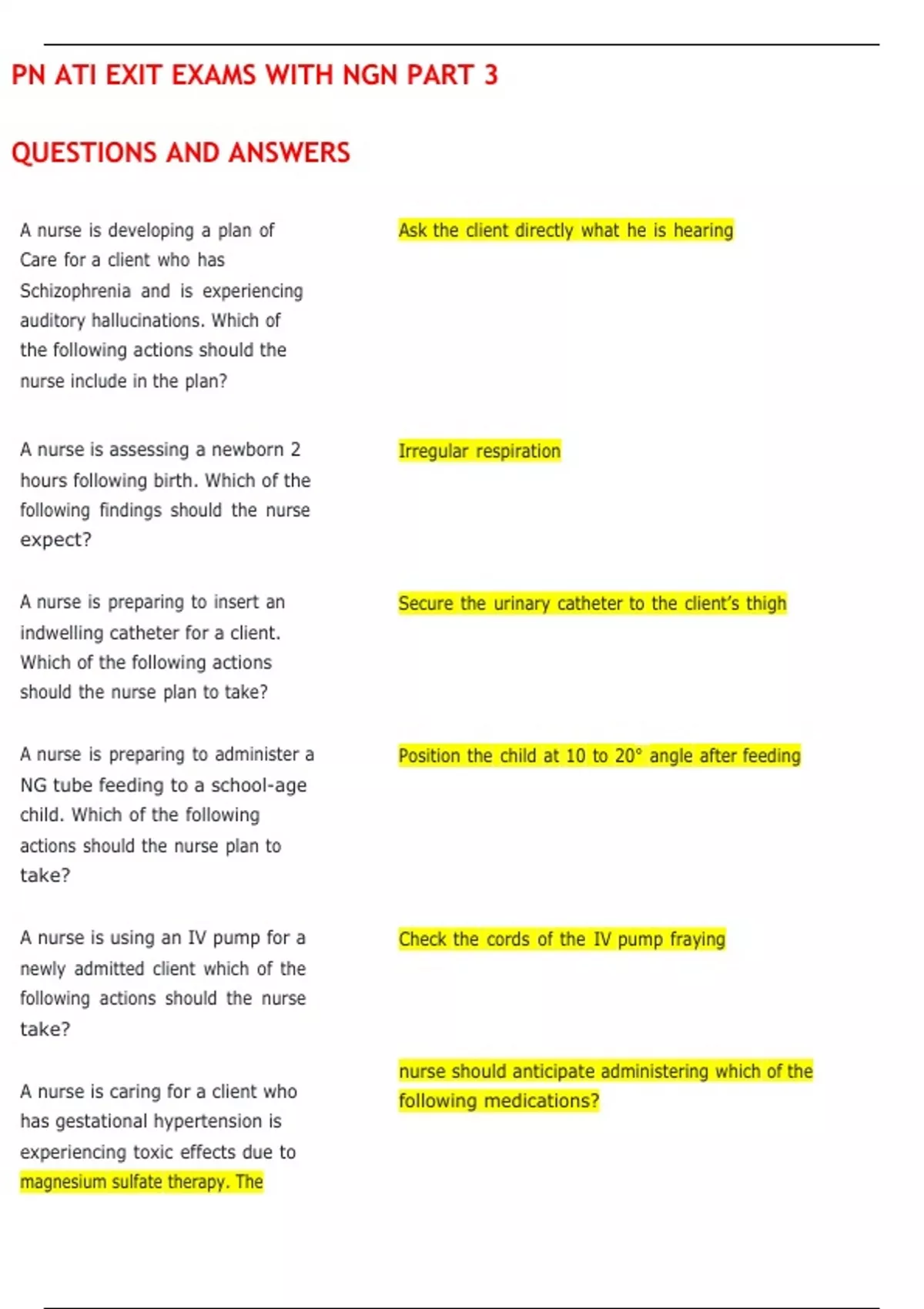 PN ATI EXIT EXAM WITH QUESTION AND ANSWERS.