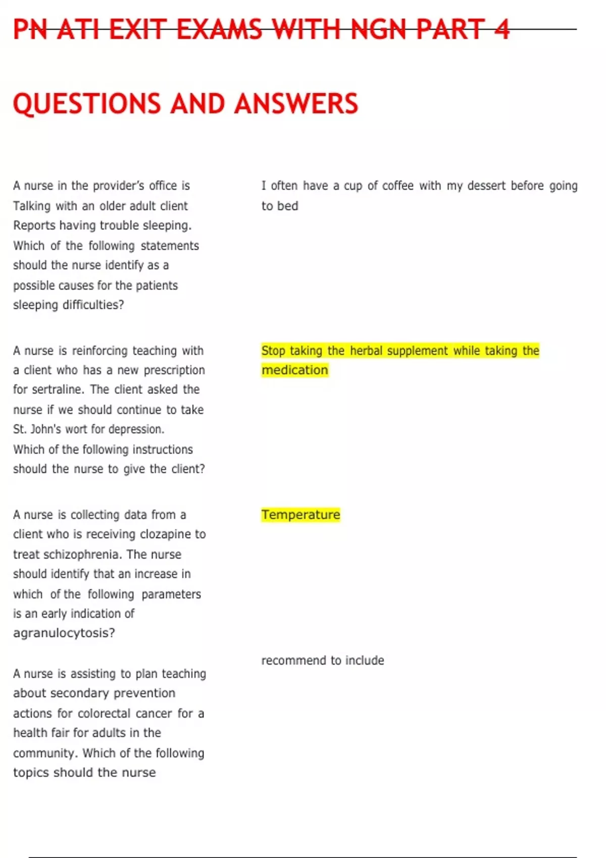 PN EXIT EXAM. QUESTIONS AND ANSWERS.