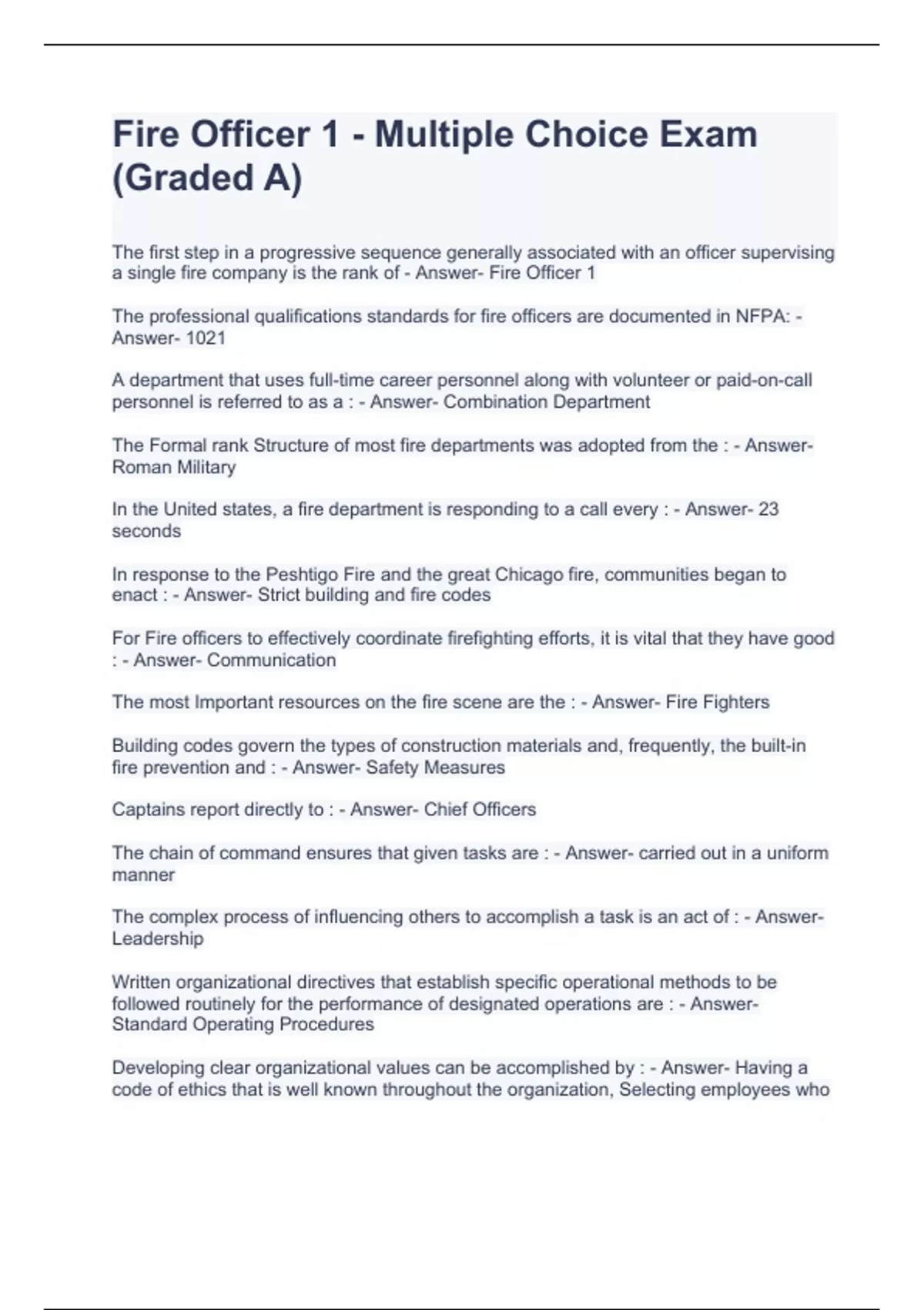 Fire Officer 1 - Multiple Choice Exam (Graded A)