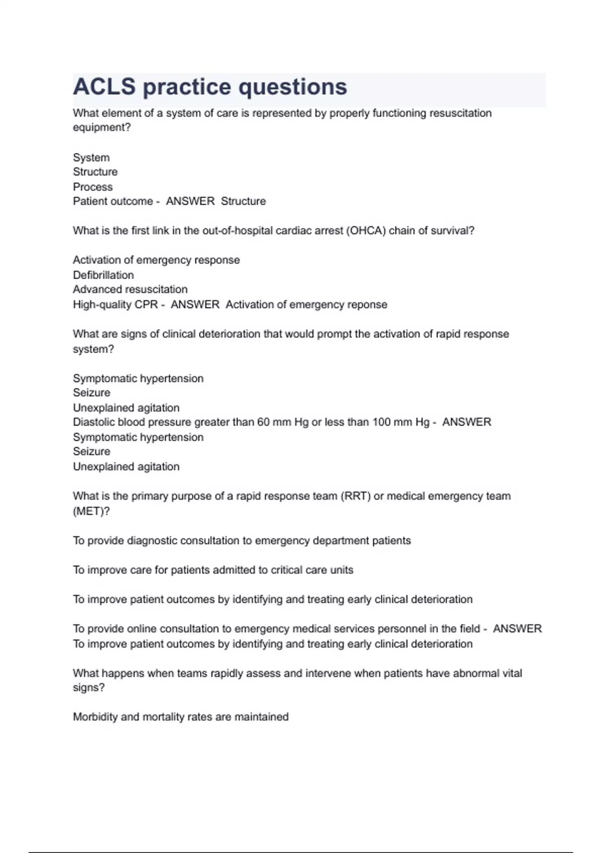 ACLS practice questions & Answers (100% CORRECT )LATEST UPDATED 2023