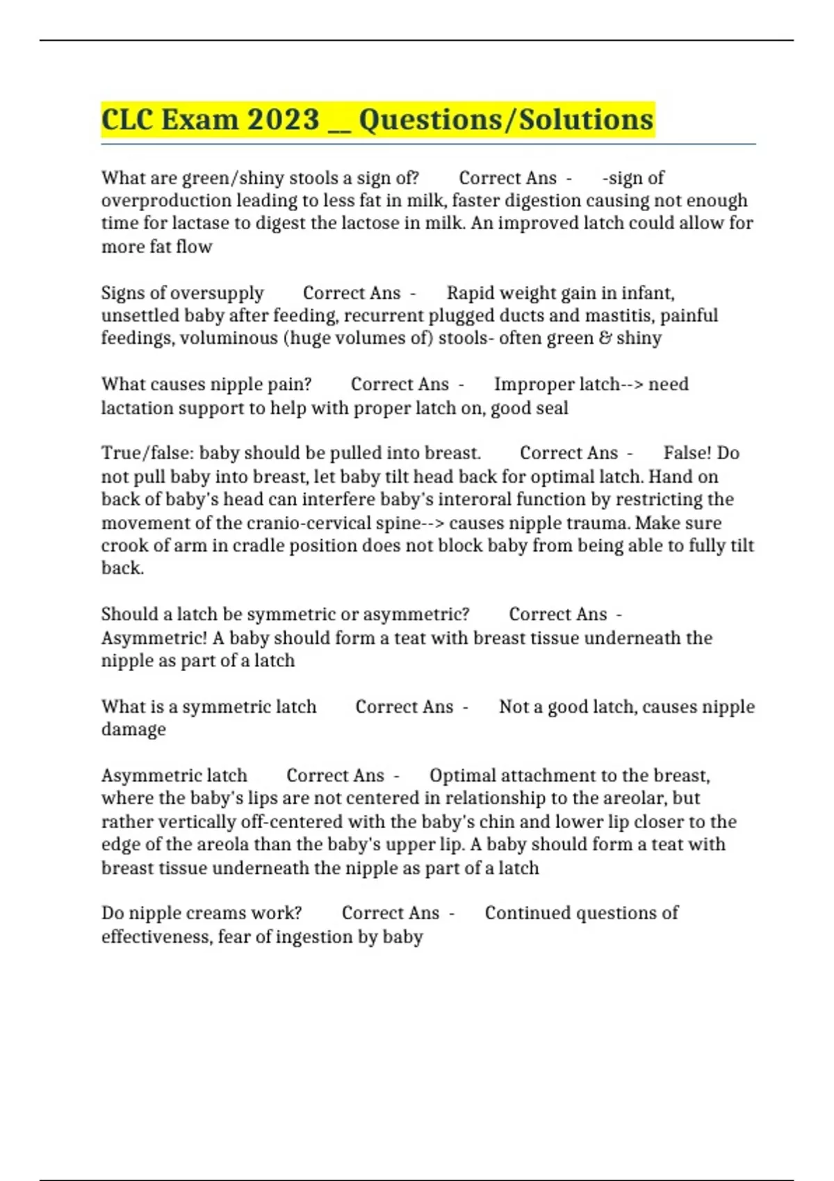 Do nipple creams work? Correct Ans - Continued questions of
