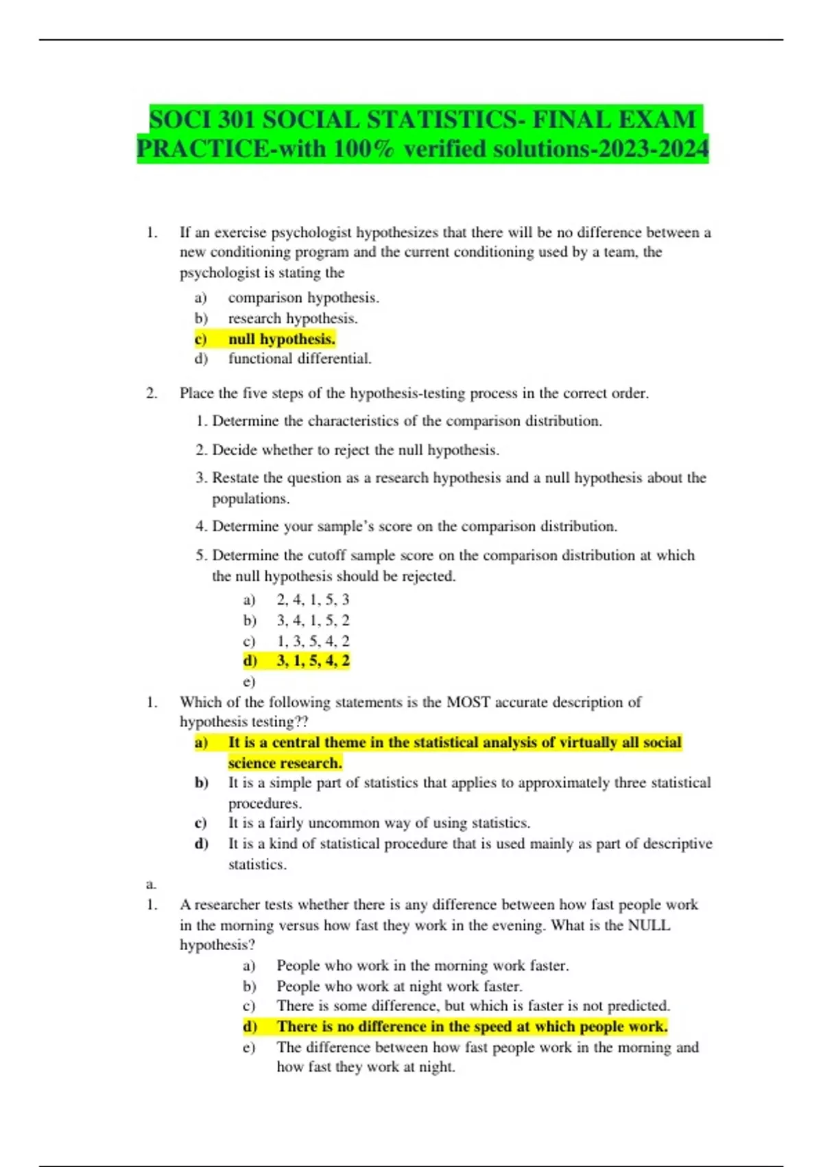 SOCI 301 SOCIAL STATISTICS- FINAL EXAM PRACTICE-with 100% verified solutions-