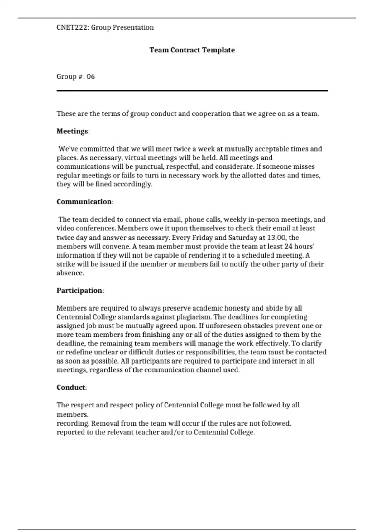 These are the terms of group conduct and cooperation that we agree on as a team.