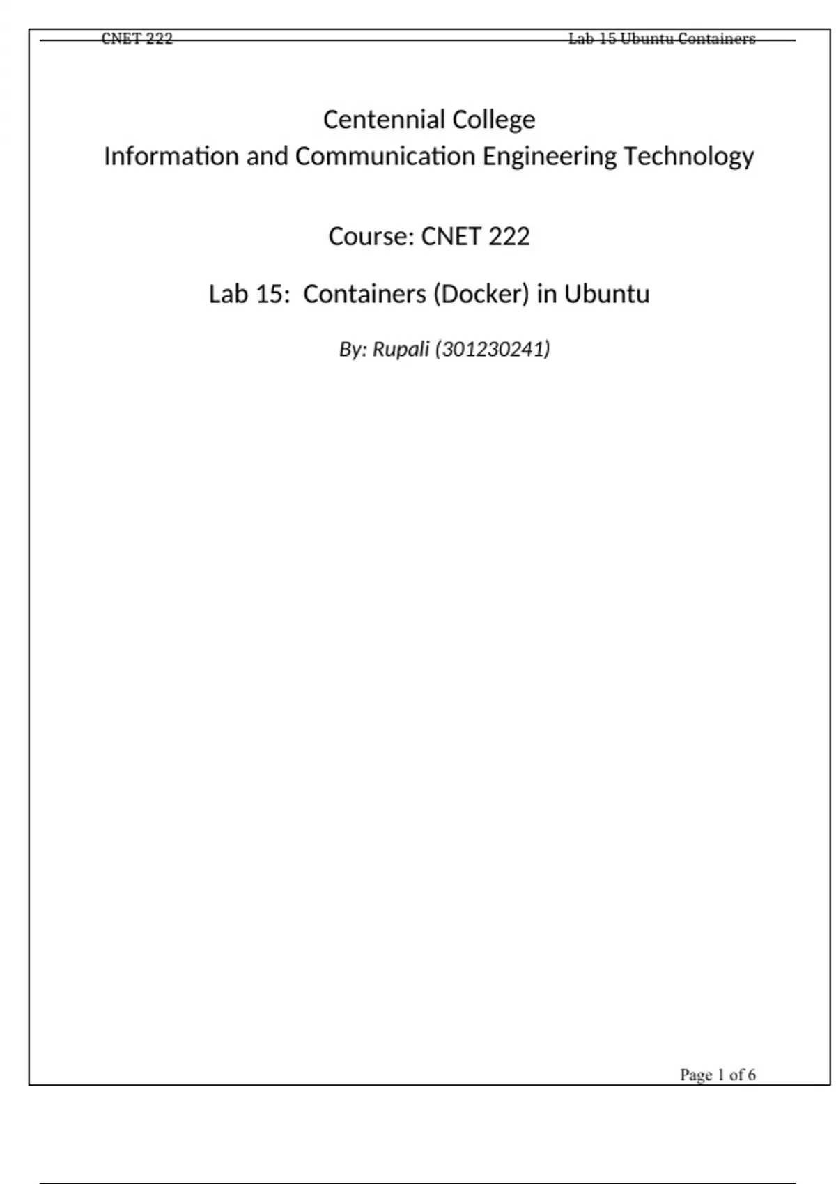 , CNET 222 Lab 15 Ubuntu Containers