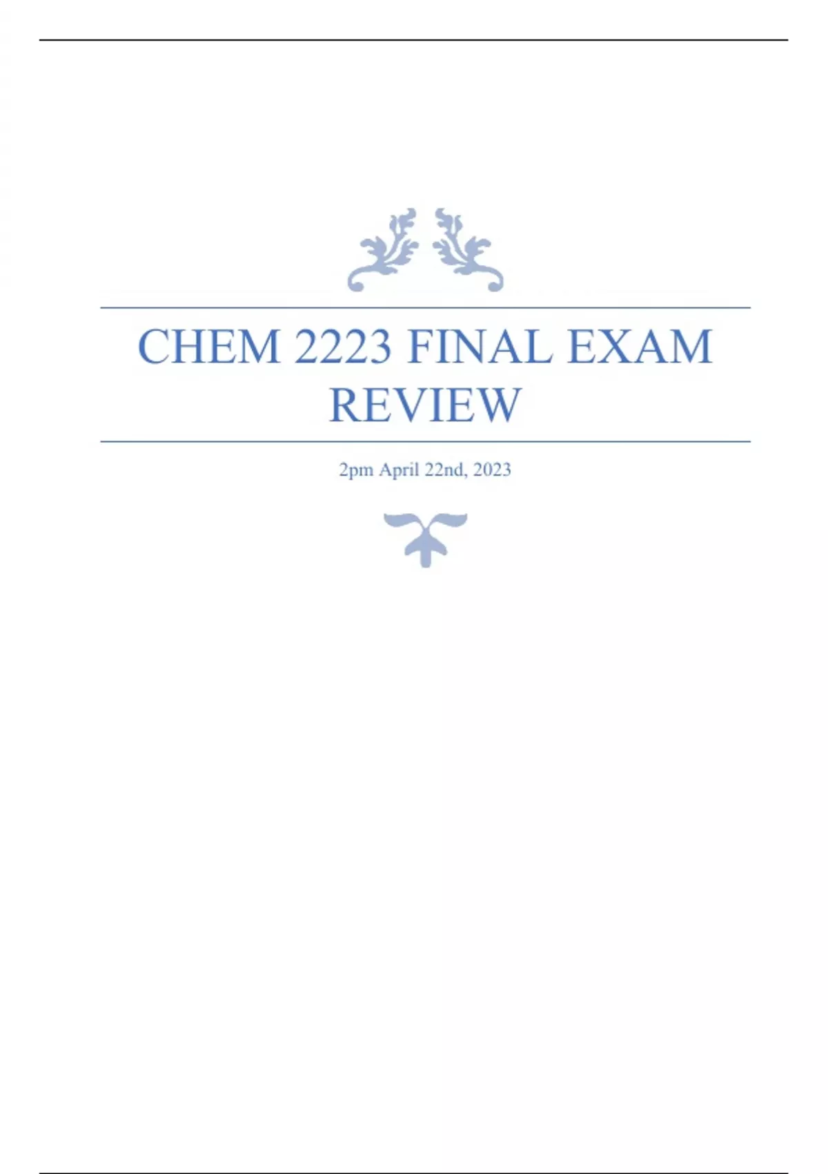 Summary Comprehensive final exam review: EVERYTHING you need to know from student who got 93% in Orgo 2223. Includes notes from all prep 101 sessions.