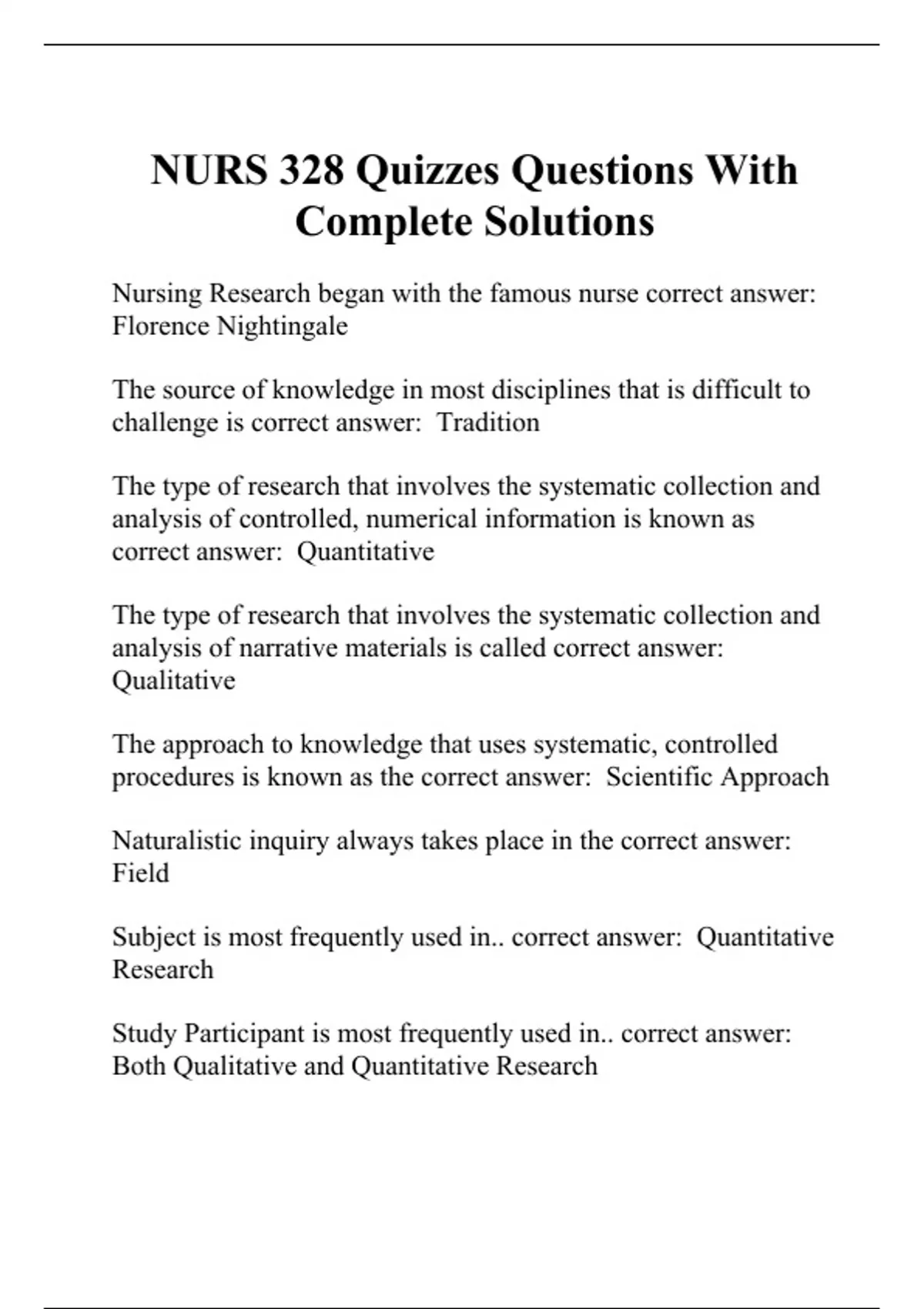 NURS 328 Quizzes Questions With Complete Solutions