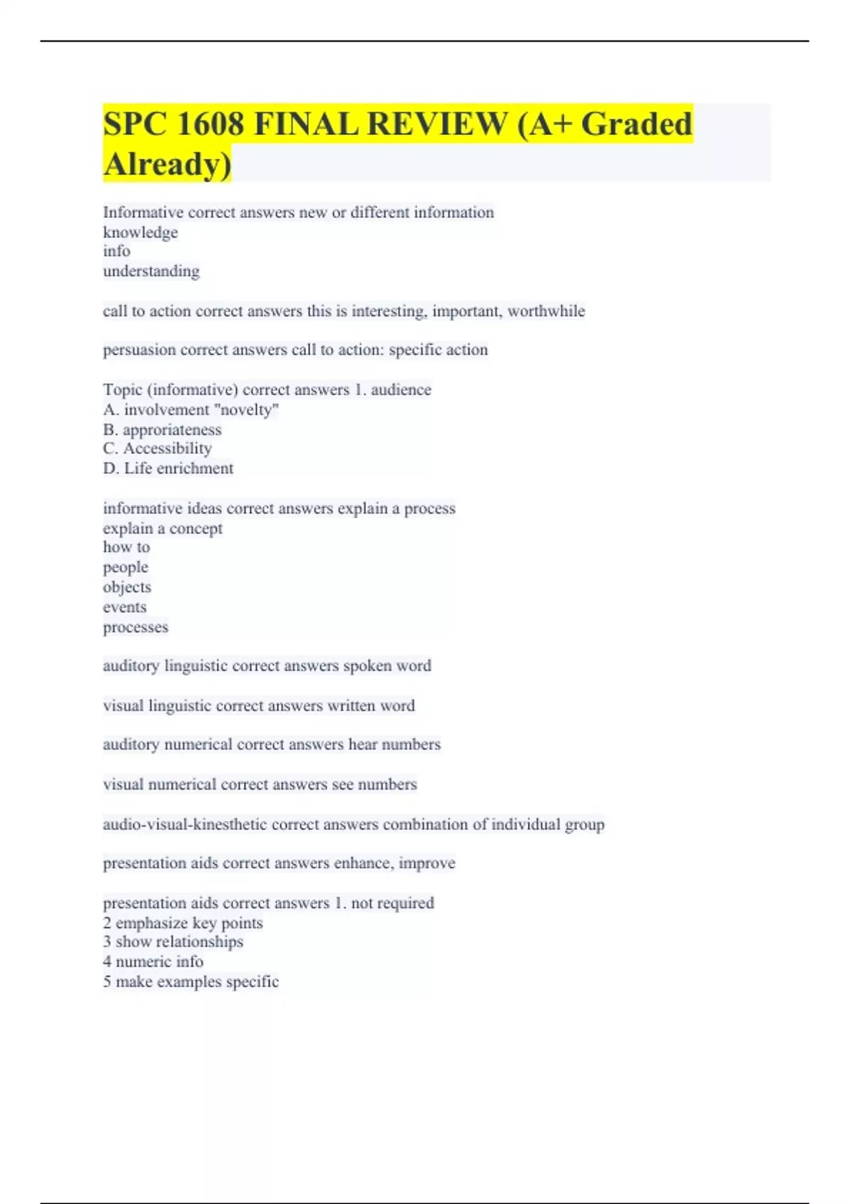 SPC 1608 FINAL REVIEW (A+ Graded Already)