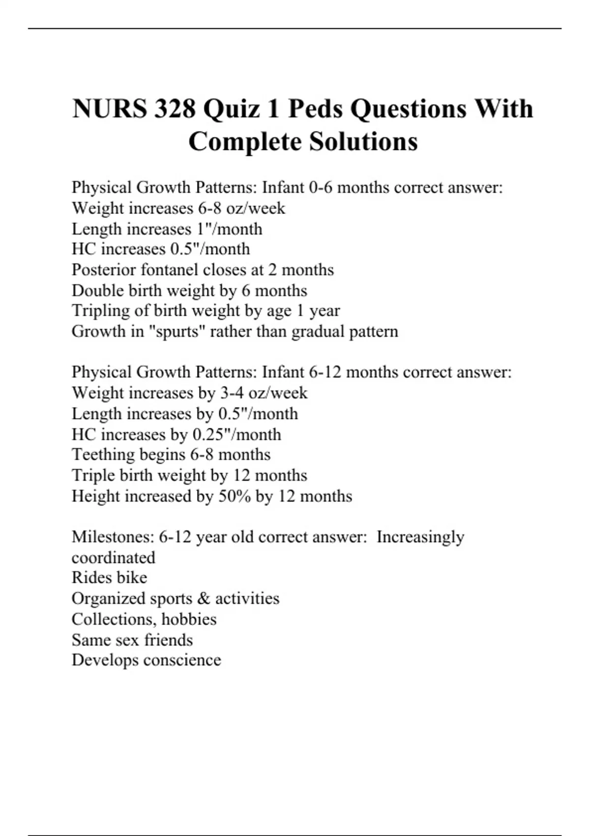 NURS 328 Quiz 1 Peds Questions With Complete Solutions.