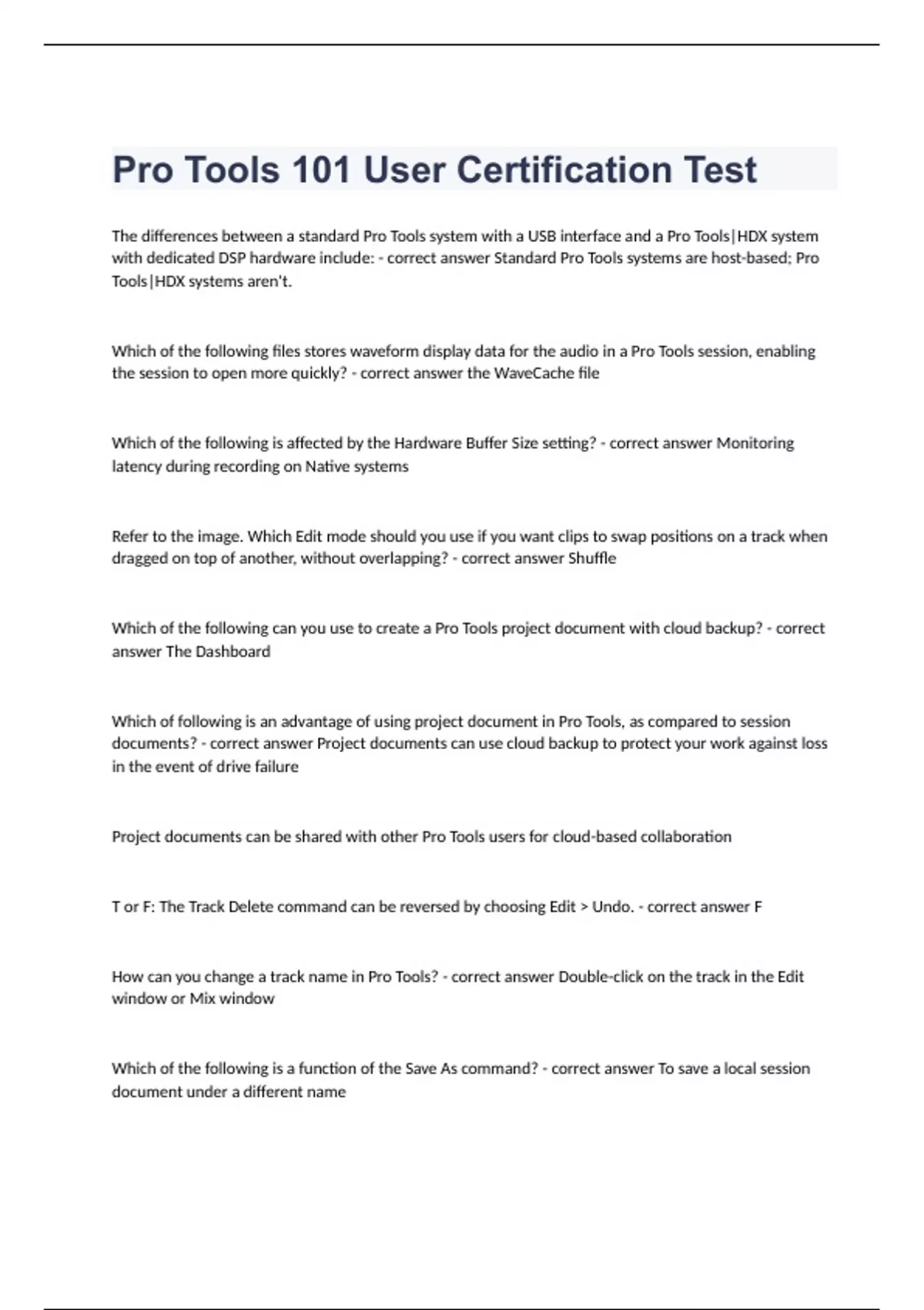 Pro tools BUNDLED exams questions and 100% correct answers