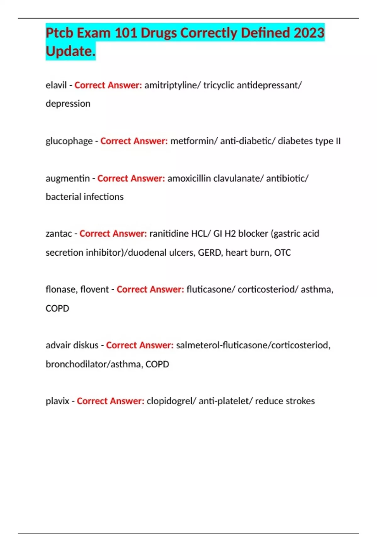 Ptcb Exm 101 Drugs Corrned 2023 Update.